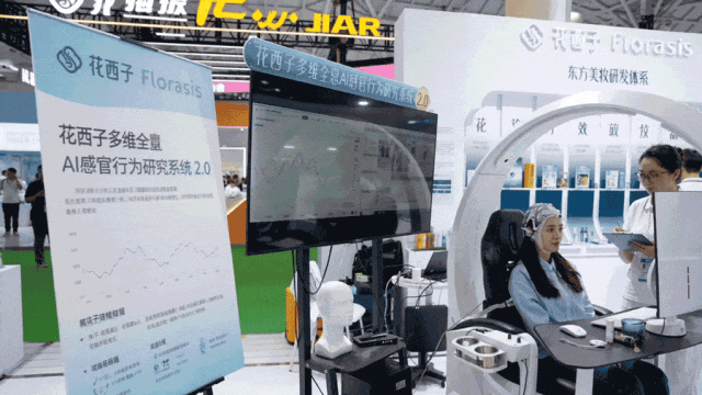 2026年4月14日,展商在消博会现场展示美妆多维全息AI感官行为研究系统。新华社记者 杨冠宇 摄