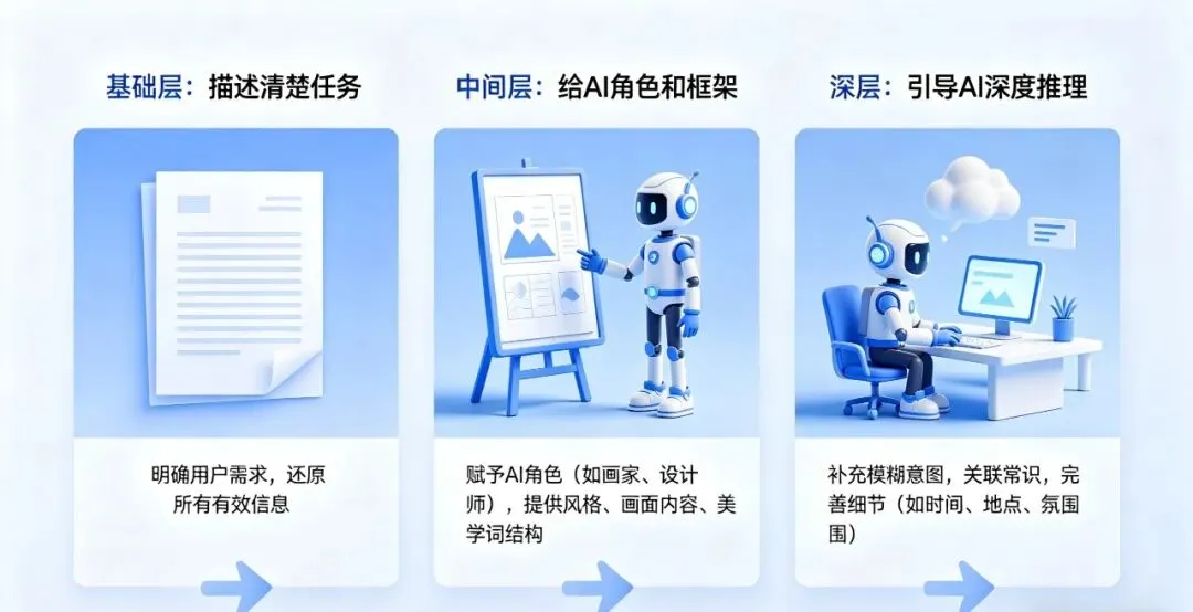 第三层:引导AI进行深度推理 不说”给我一个方案”,而说”请先分析当前情况,列出核心矛盾,再给出方案,并说明每个方案的风险点”——这是引导AI分步思考,而不是直接给结论。