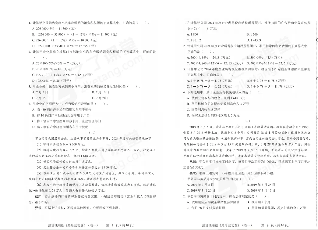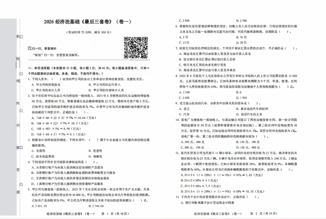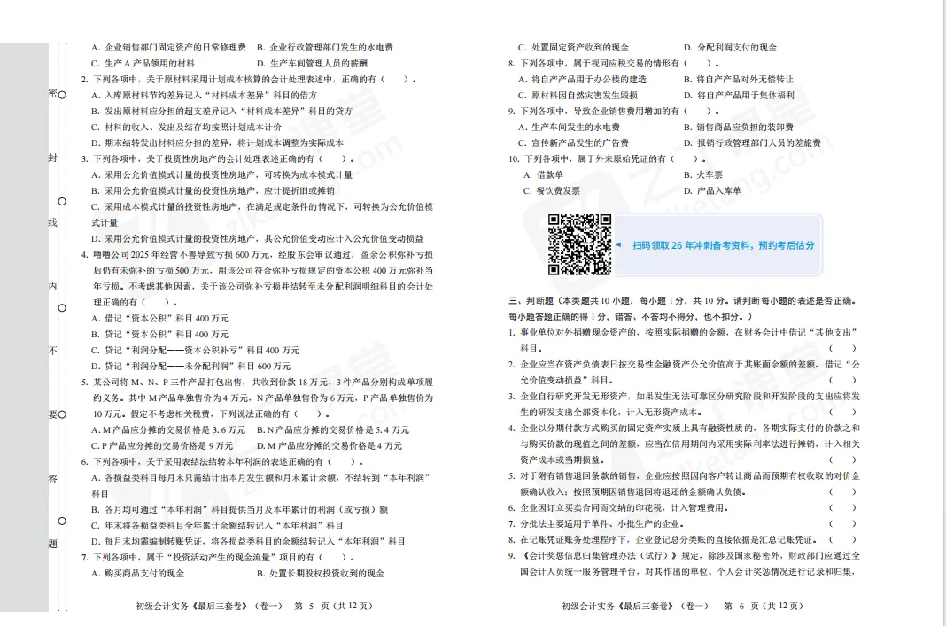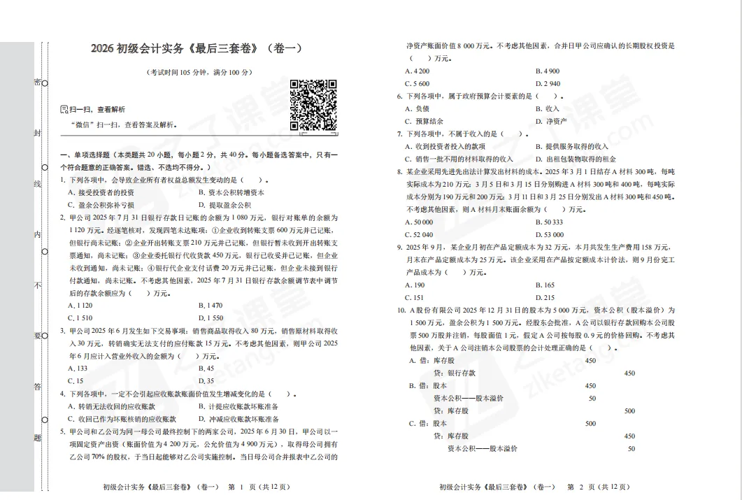 马勇老师初级会计《最后三套卷》电子版来啦!!立马开始刷题 初级会计考试倒计时,这《最后三套卷》请一定要做,查缺补漏,做好最后的冲刺 试卷下载: https://www.zlketang.com/ac/marketing_tools?active_id=180 试卷内部展示: