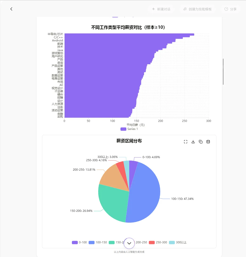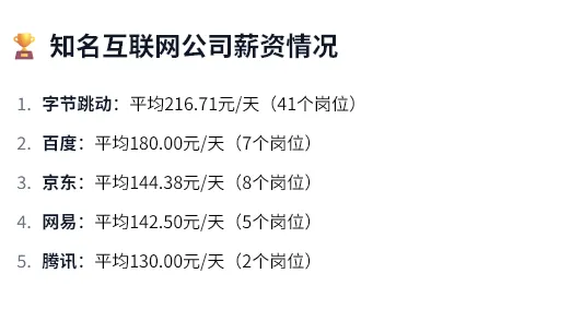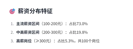薪资分化明显:73%的岗位集中在100-200元区间,但仍有5.3%的高薪岗位(≥300元);