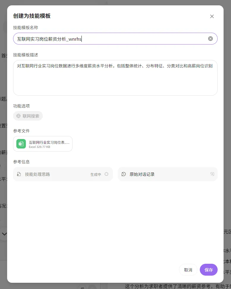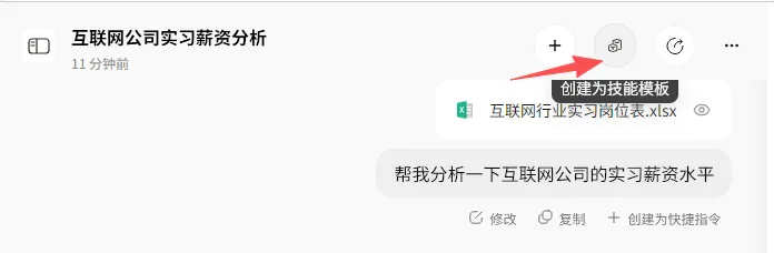 如果类似的分析经常做,这次「办公小浣熊」还推出了「技能模板」功能。