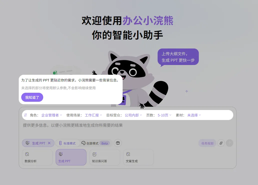 如果你经常做PPT生成、数据分析等工作,那「办公小浣熊」刚好能解决你的实际需求。