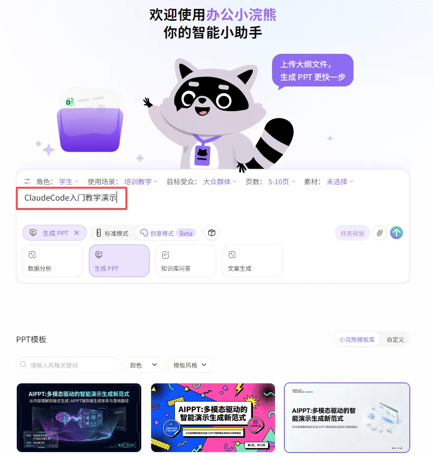 如有PPT生成、数据分析等常见办公需求,强烈推荐「办公小浣熊」。