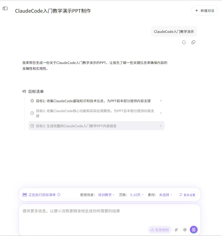 这个过程会慢一些,别慌,它自己在设计计划,需要收集一些数据。