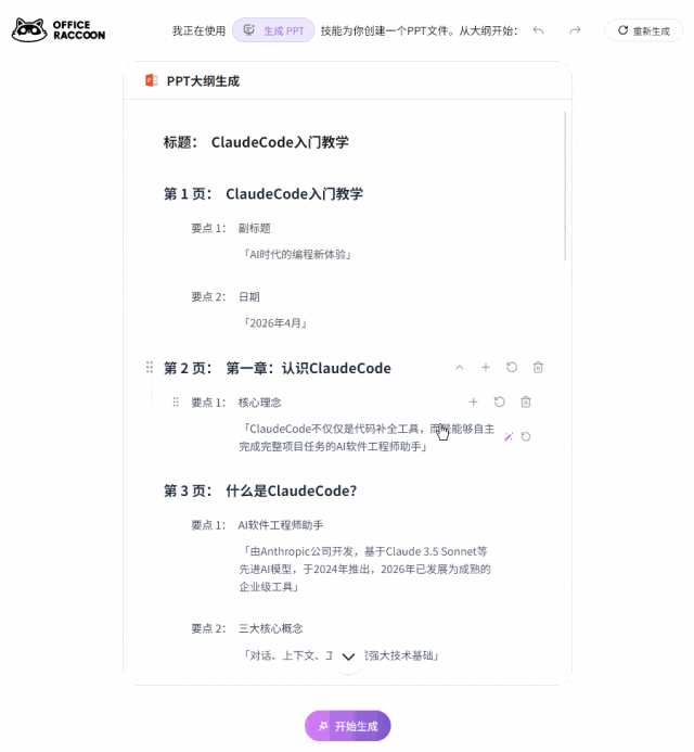 PPT大纲生成完成: