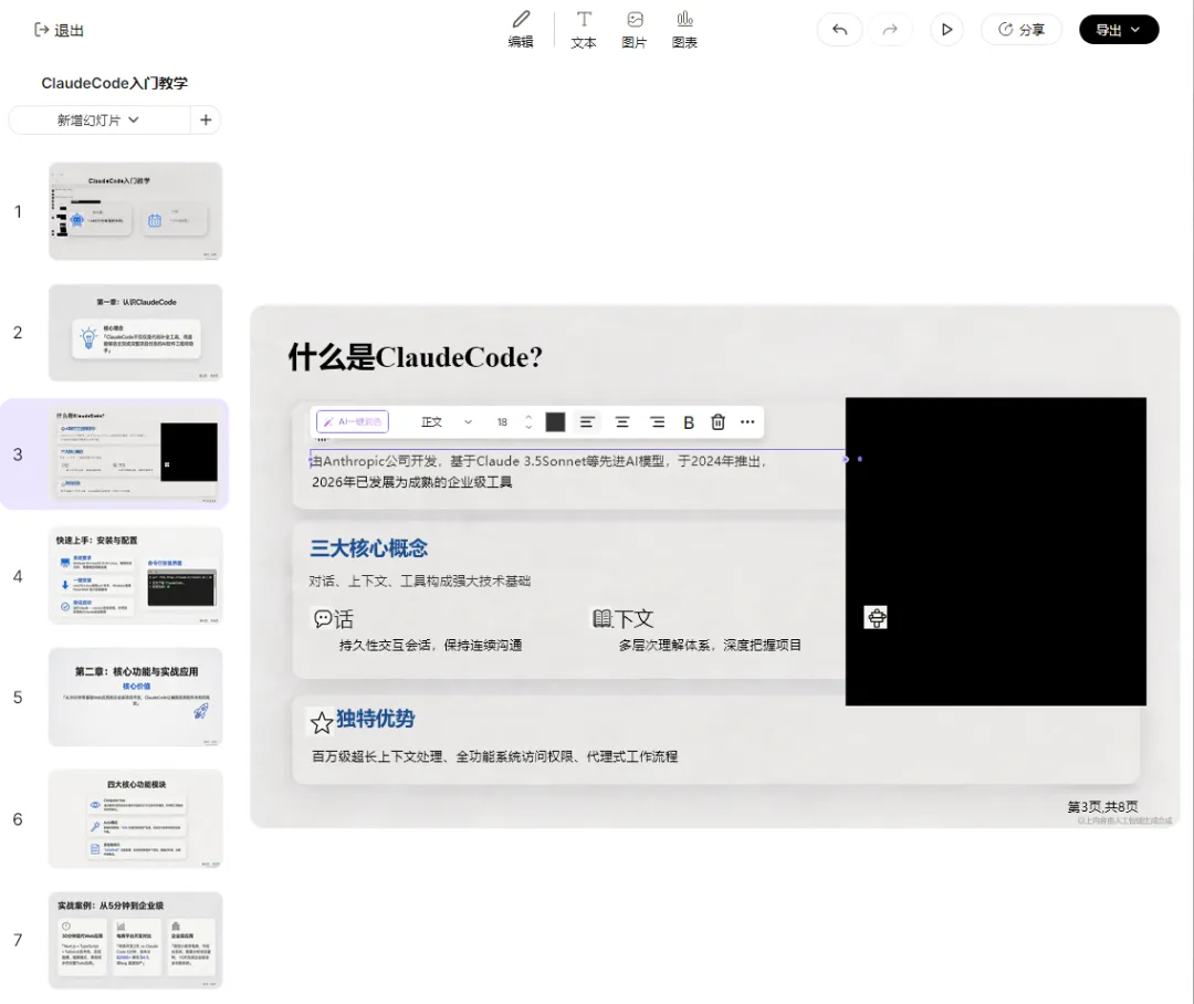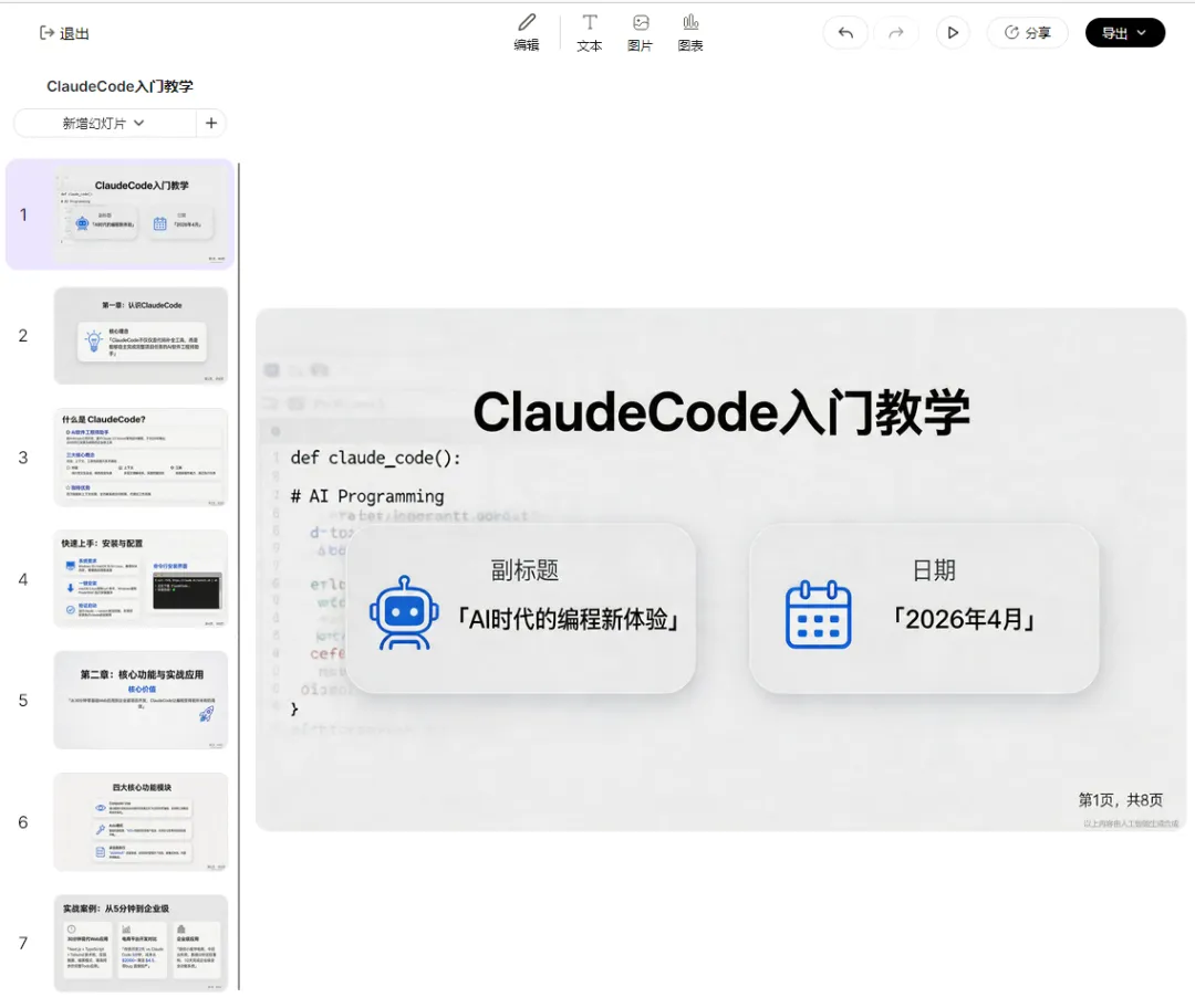 如有你想生成一份使用AI写代码的PPT,也可以尝试一下,如图所示: