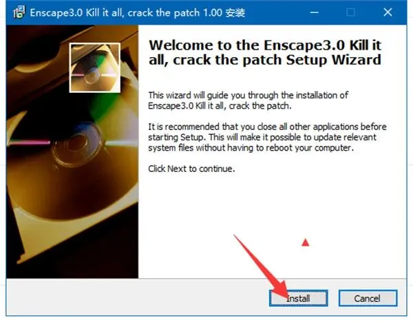 5、在双击运行“Enscape3.0 Kill it all, crack the patch学研补丁.exe”弹出下图情况,直接点击install安装即可
