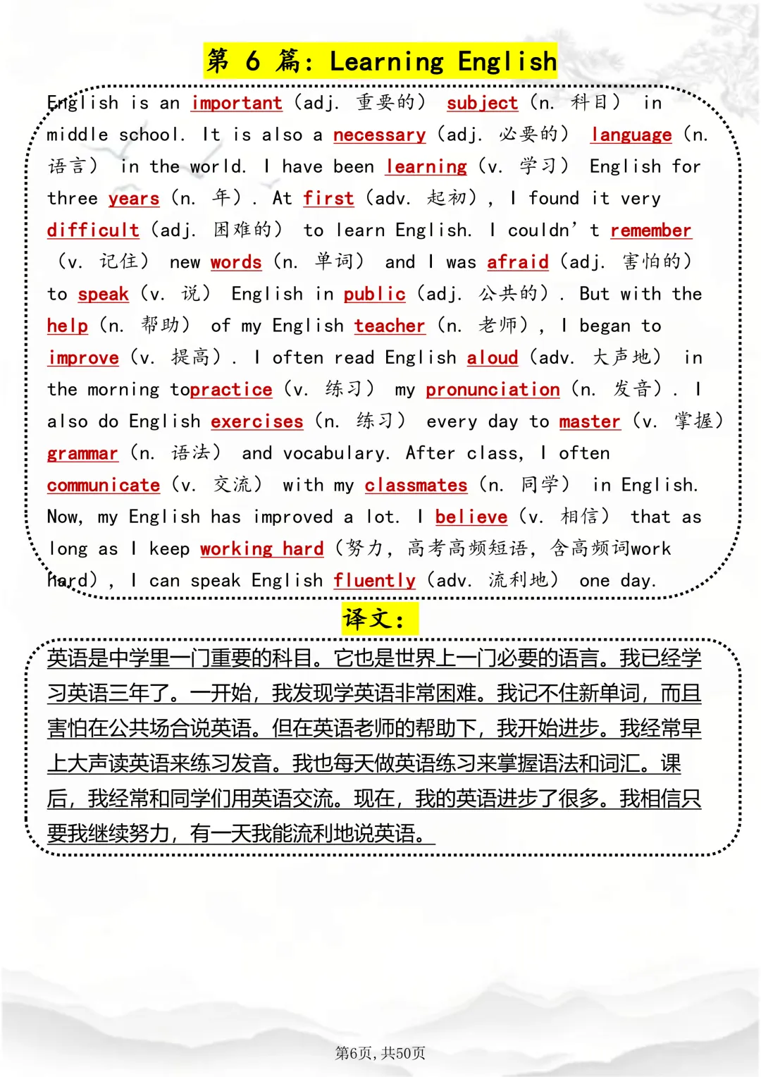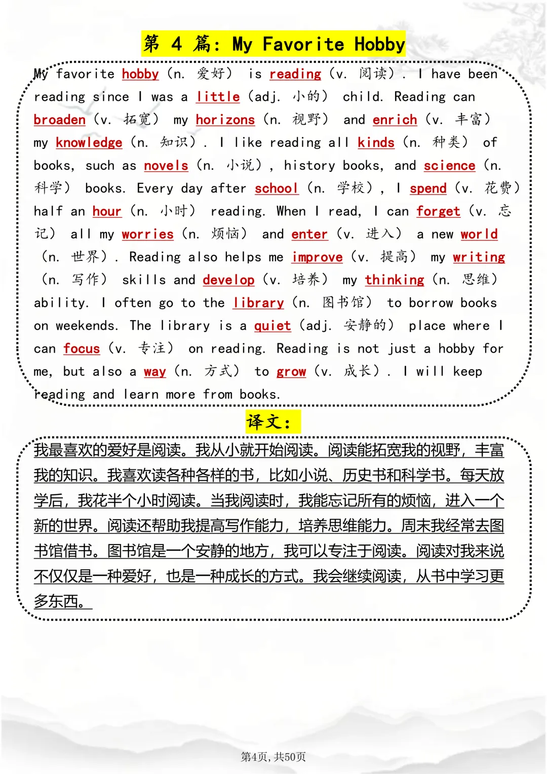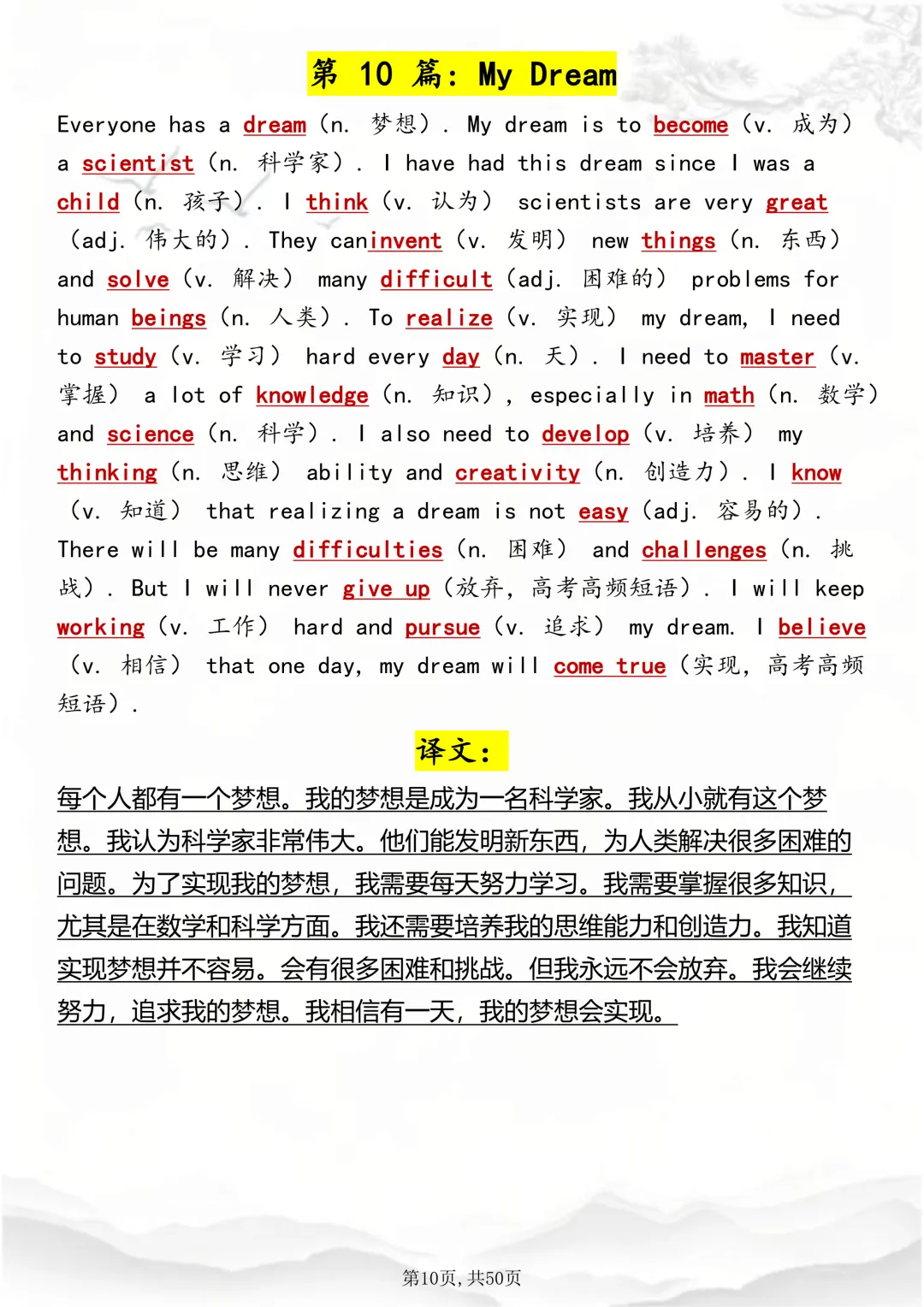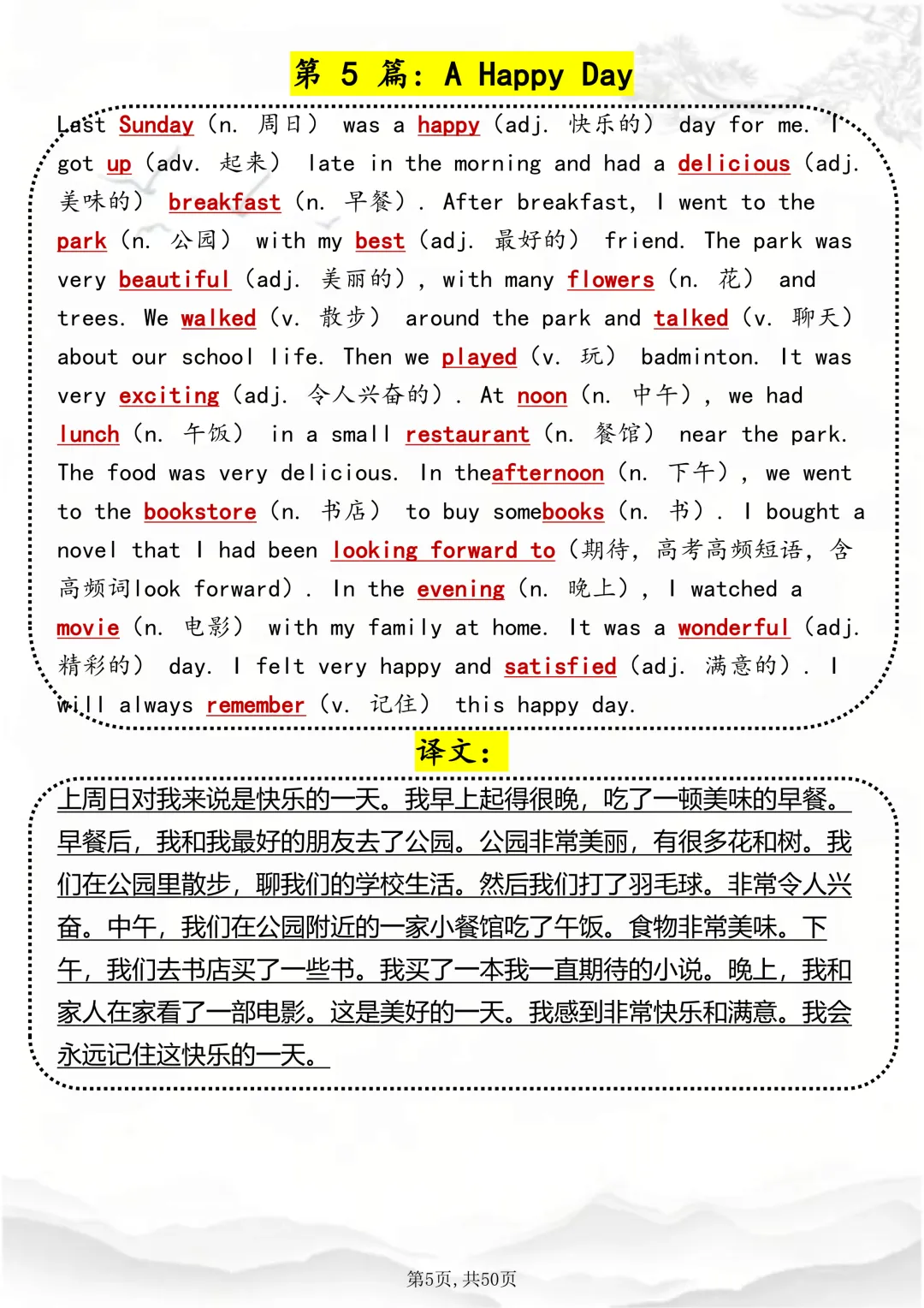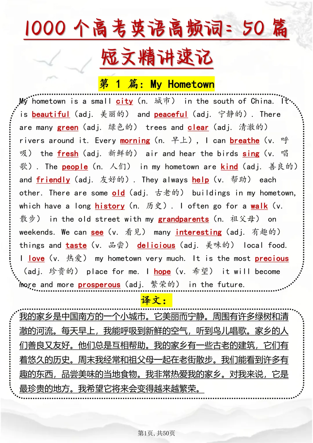 可打印,这50 篇短文,帮你速记1000 个高考英语高频词 因篇幅有限,点击我的头像私信我回复 “资料获取” 就可以领取 word 电子版。以下是部分资料内容,完整高清版的发送私信即可。 本篇文章一共 50 页,完整版可打印↓↓↓