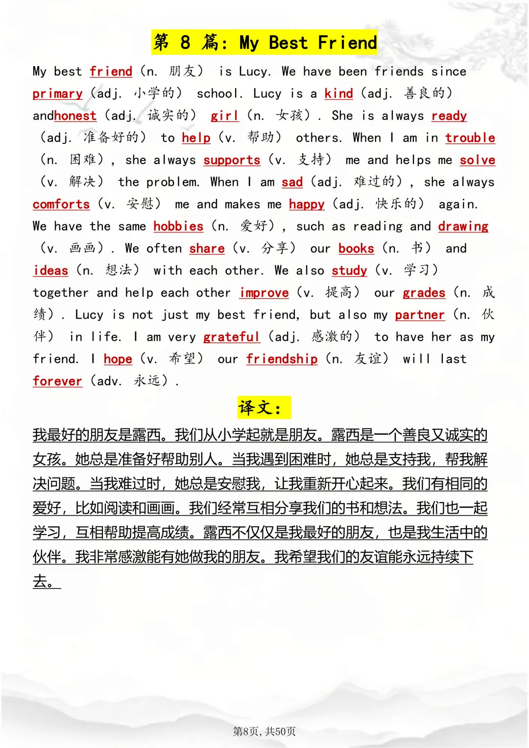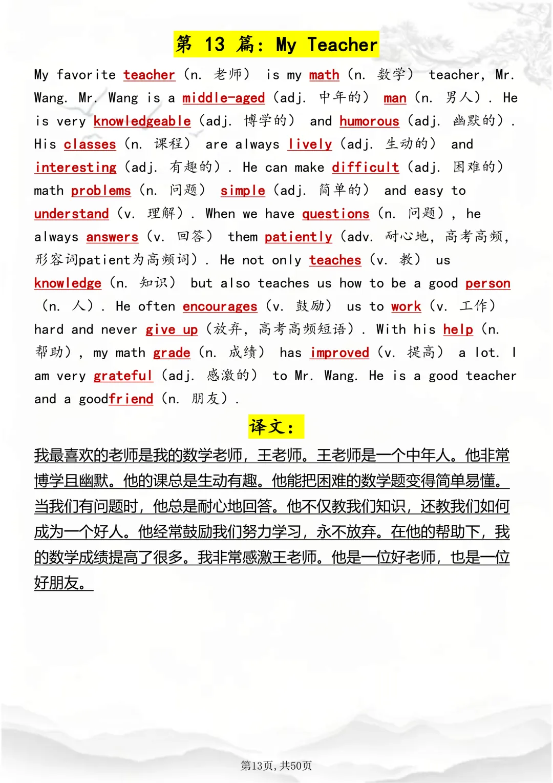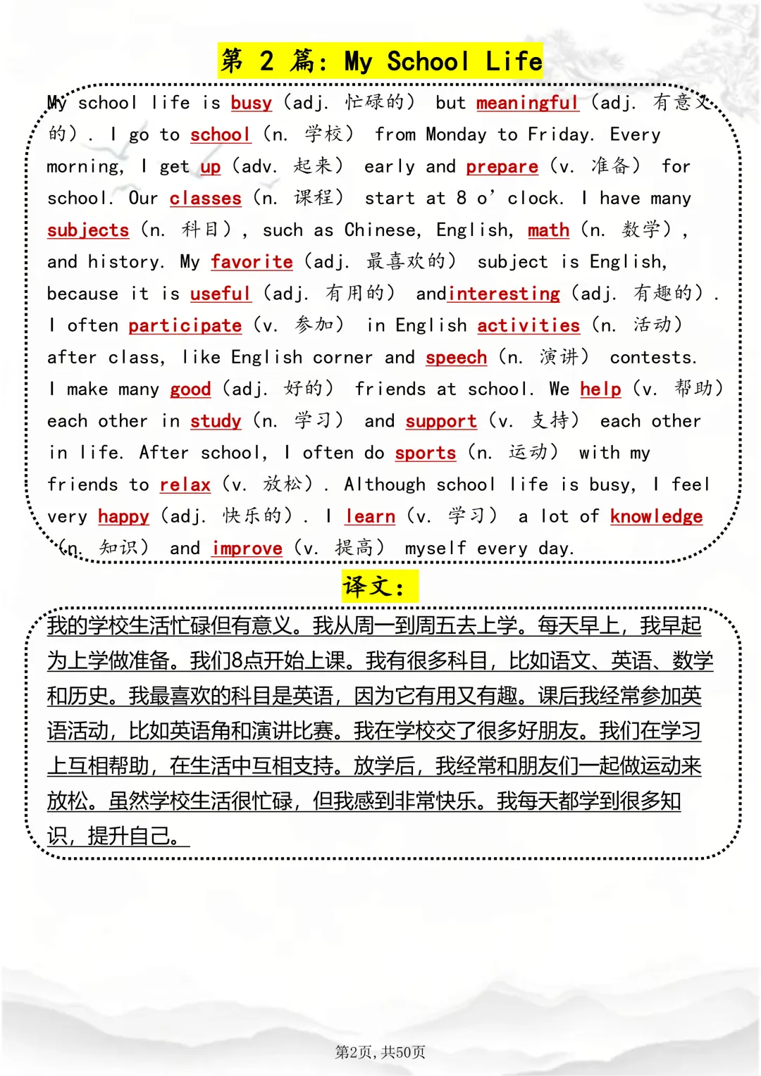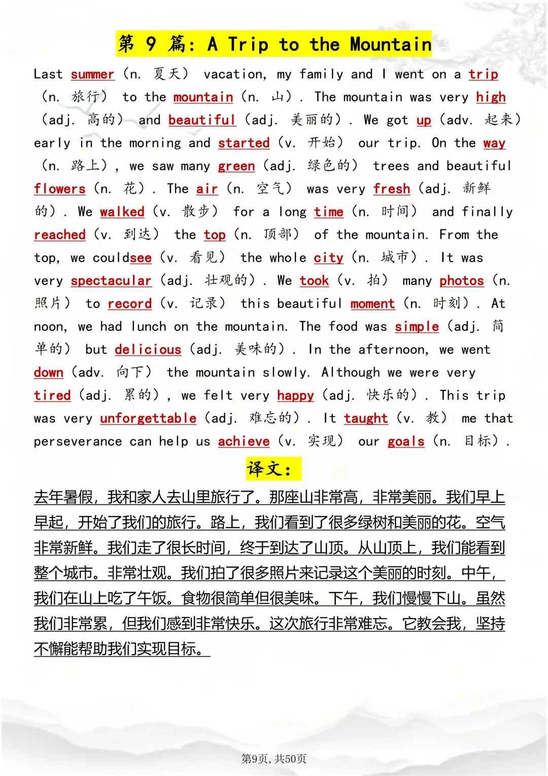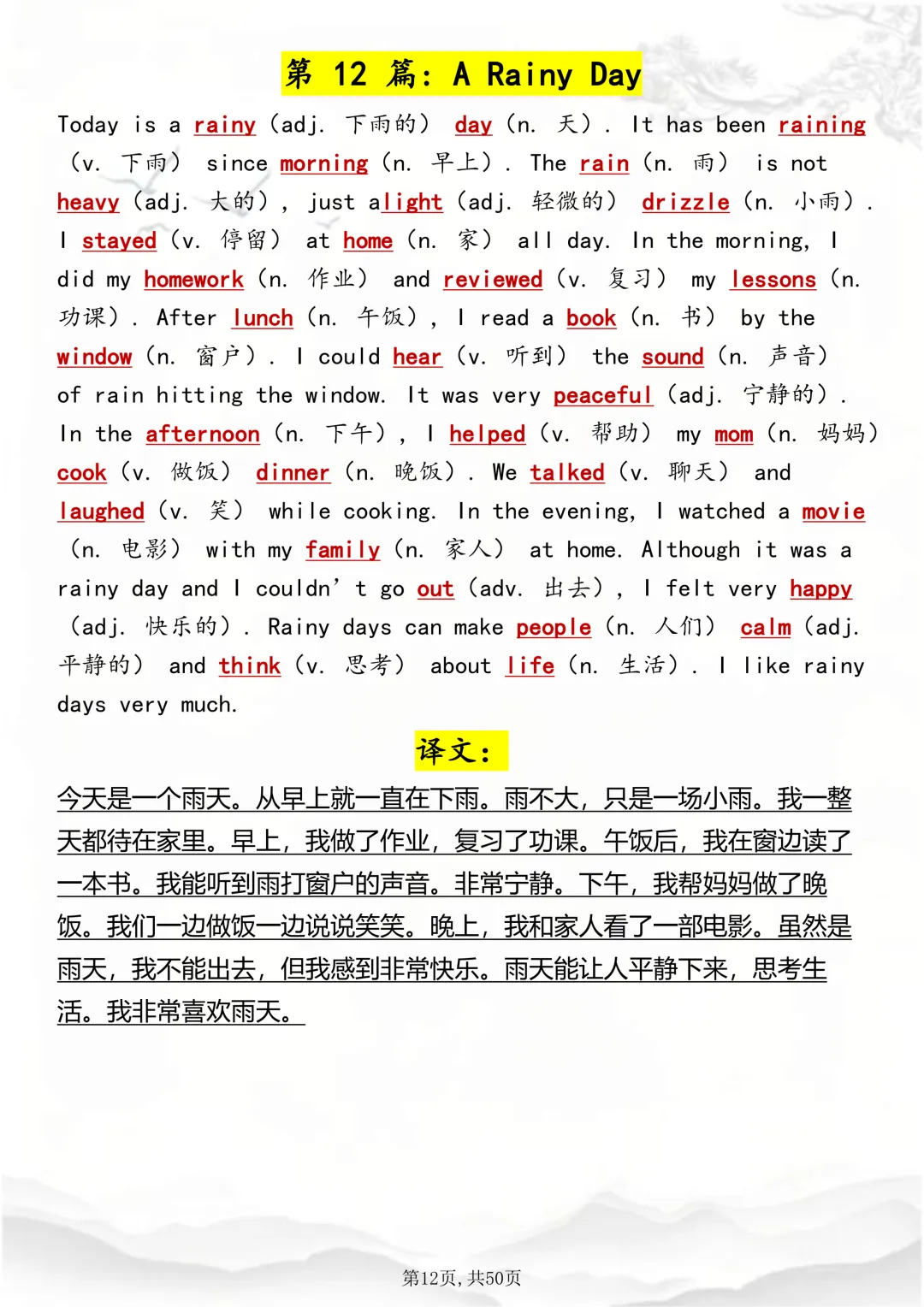 可打印,这50 篇短文,帮你速记1000 个高考英语高频词 因篇幅有限,点击我的头像私信我回复 “资料获取” 就可以领取 word 电子版。以下是部分资料内容,完整高清版的发送私信即可。 本篇文章一共 50 页,完整版可打印↓↓↓