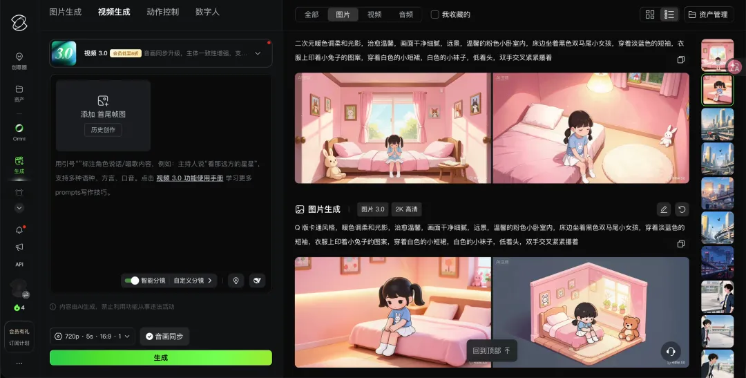 人物确定下来之后,接着就是生成场景。我这部漫剧用到的场景主要有三个:家里的卧室、幼儿园门口、教室,再加上不同镜头的切换。