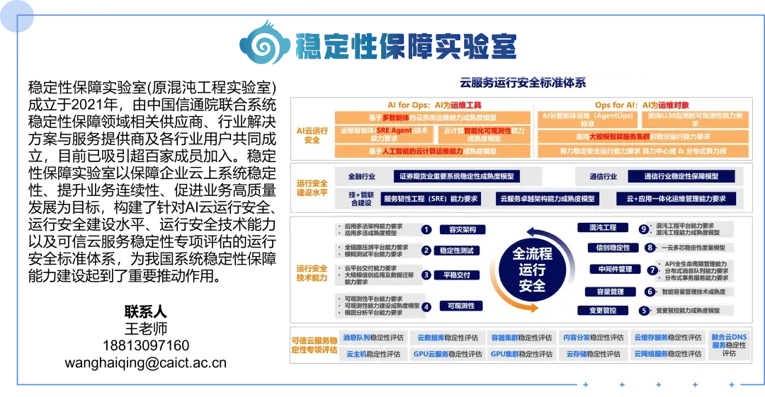 中国信通院稳定性保障实验室将持续发挥标准制定、评估认证、技术研究、产业赋能作用,联合行业各方,构建更可靠、更具韧性的数字服务运行安全保障体系。2026年系统稳定性保障体系评估启动!锚定AI for Ops/Ops for AI,筑牢数字运行安全基石