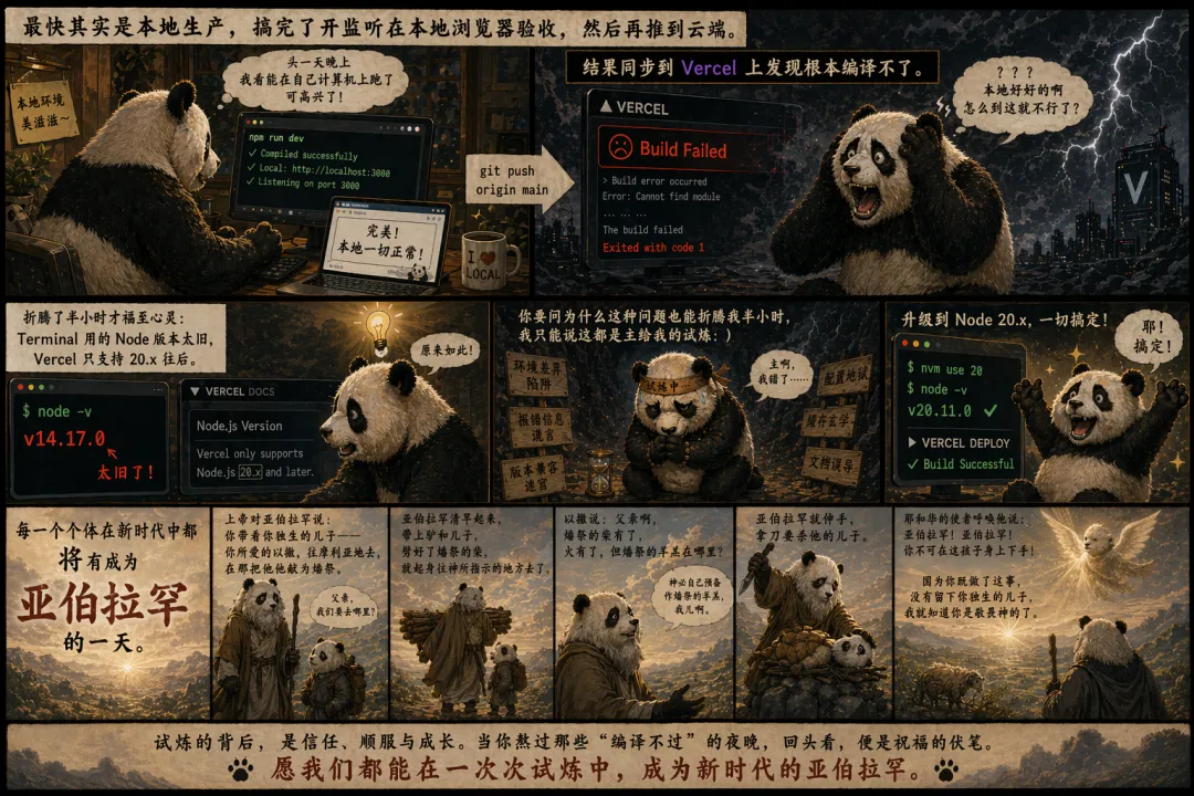 最快其实是本地生产,搞完了开监听在本地浏览器验收,然后再推到云端。就是本地环境和远端环境差太多,头一天晚上我看能在自己计算机上跑了可高兴了,结果同步到 Vercel 上发现根本编译不了。