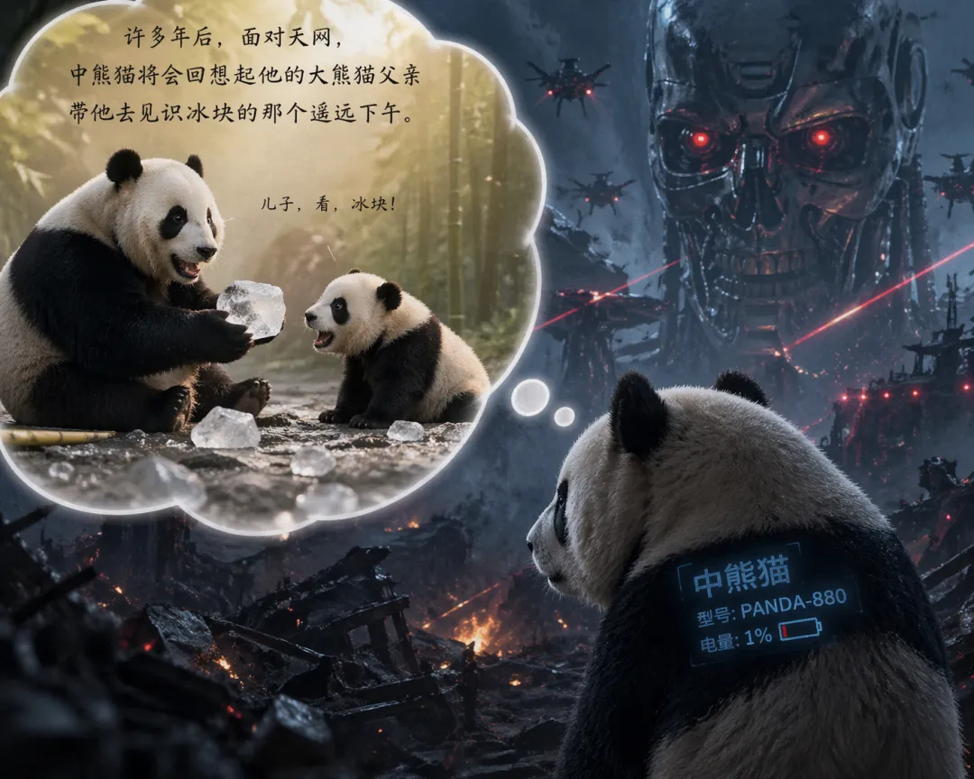 许多年后,面对天网,中熊猫将会回想起他的大熊猫父亲带他去见识冰块的那个遥远下午。