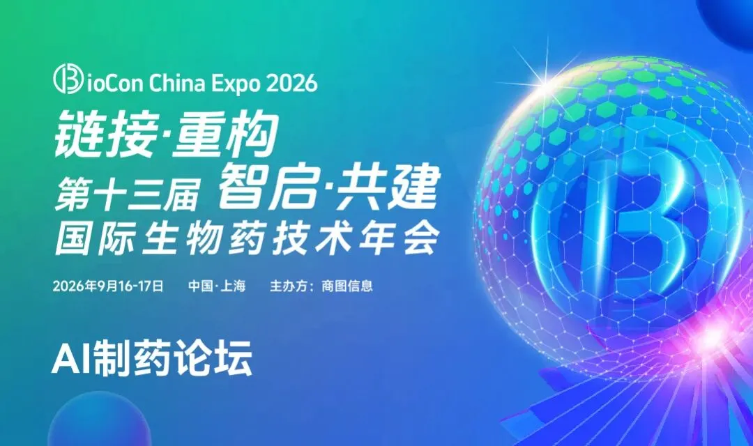 2026年9月16-17日上海,BioCon 2026第十三届国际生物药技术年会特设AI制药行业峰会,将携宏观格局、核心技术、合规落地、商业化实战、细分应用、全产业链生态六大板块,汇聚产学研监管权威专家,系统性拆解AI制药从算力算法到临床落地的每一个关键节点。