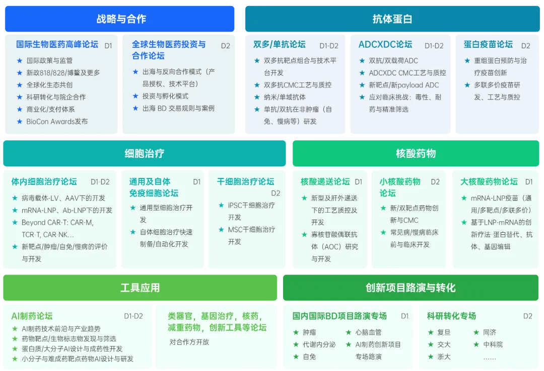 论坛设置 | 战略与合作、抗体蛋白、细胞治疗、核酸药物、工具应用、创新项目路演与转化等