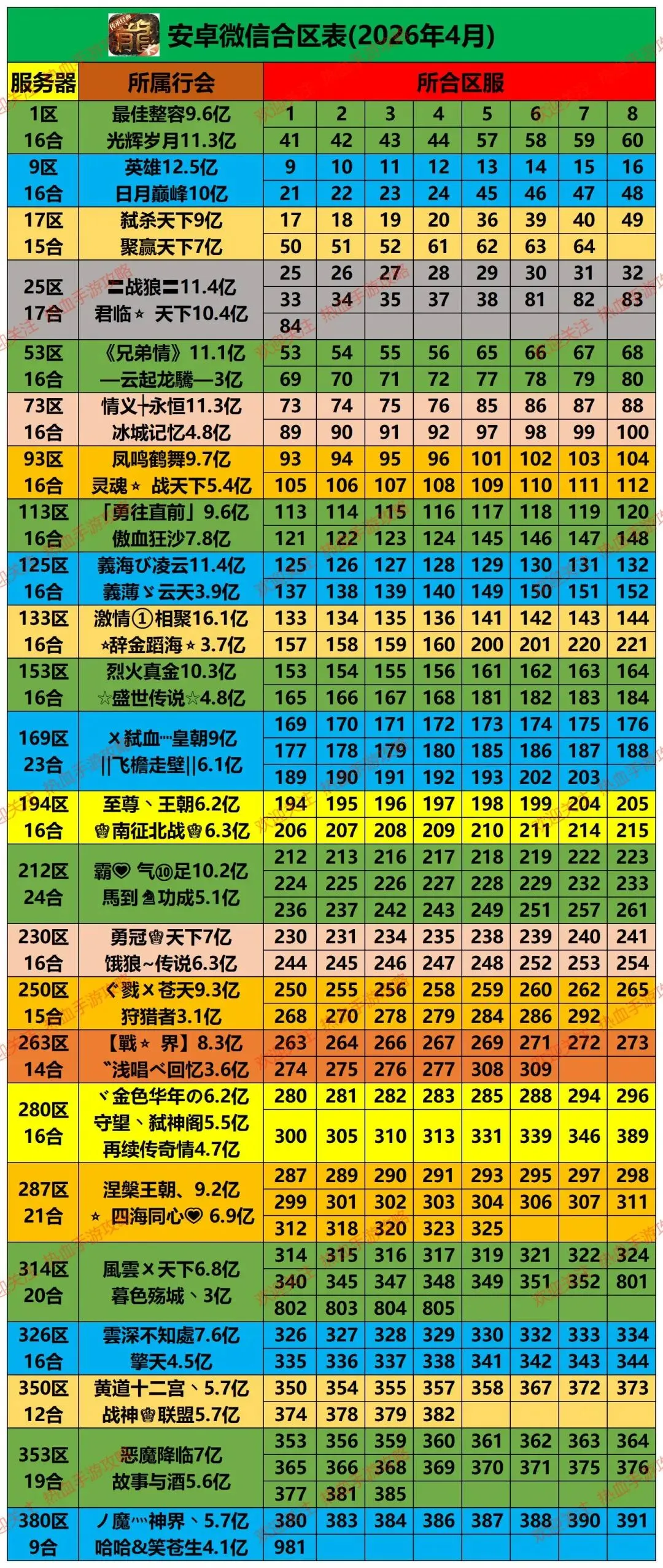 数据每两至三个月更新一轮,精准核对战力信息。今日开启安卓微信区更新,为期七天,依次更新七大平台行会与战力数据,若有出入,敬请留言告知。
