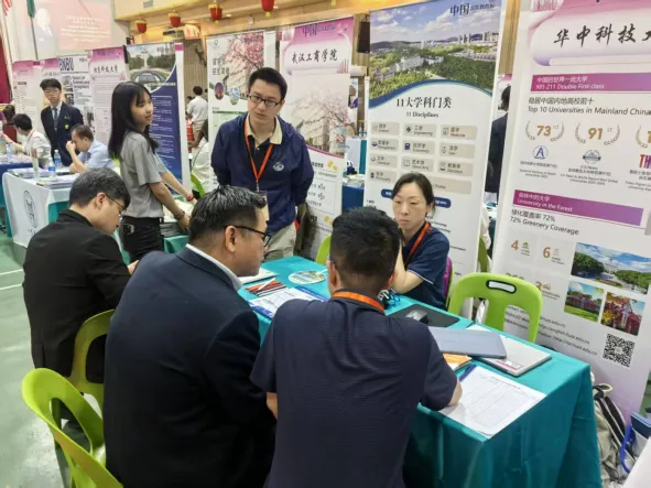4月9日至11日,代表团在马来西亚先后走进槟城韩江中学、霹雳育才独立中学和巴生兴华中学,参加三所学校举办的教育展,面向有意来华留学的高中生提供升学咨询,详细介绍我校招生政策、专业设置、就业前景等信息,现场互动氛围热烈。武剑洁老师结合我院在人工智能、大数据、软件工程等领域的学科优势,向学生展示了软件专业的广阔发展前景,吸引了众多学生驻足咨询。代表团还与校方代表进行交流,了解各校办学历史、办学规模及学生升学意愿等情况。在巴生兴华中学教育展期间,中国驻马来西亚大使欧阳玉靖亲临我校展位,向现场师生推介华中科技大学,对软件学院等院系的国际化办学成果给予充分肯定。