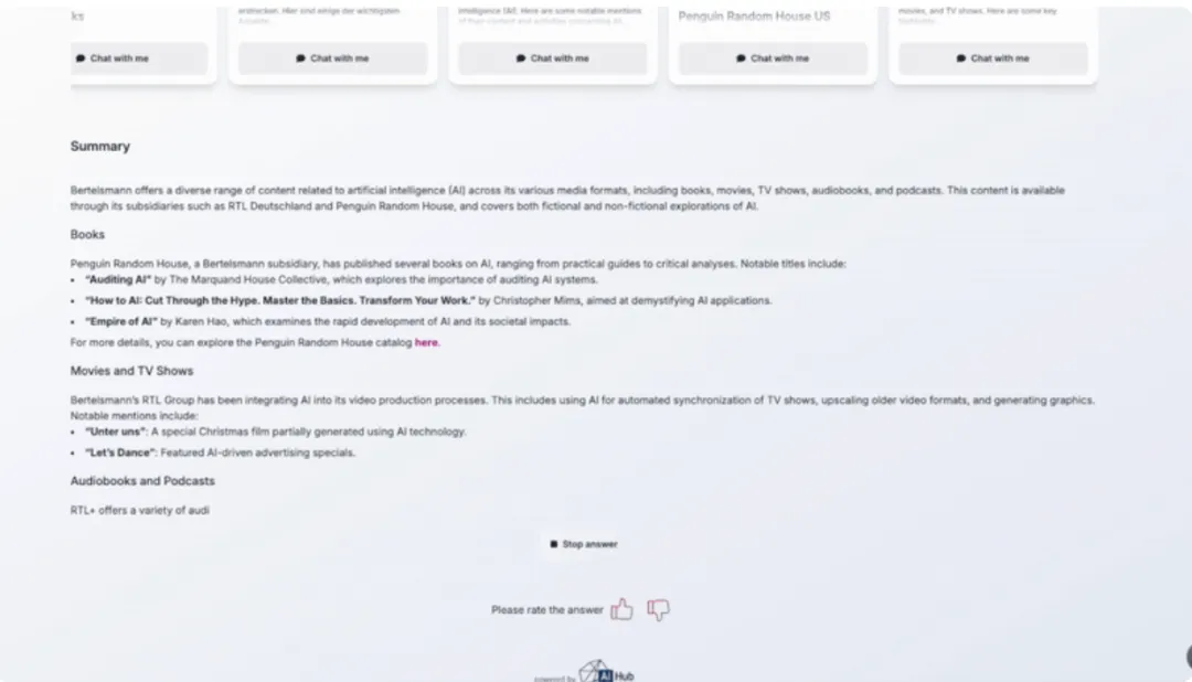 网络智能智能体 :监控外部趋势和评论,以提供贝塔斯曼自有内容之外的背景信息。