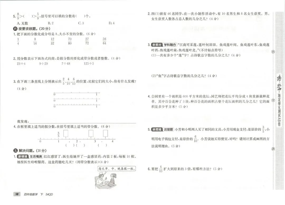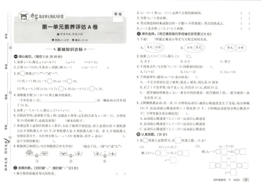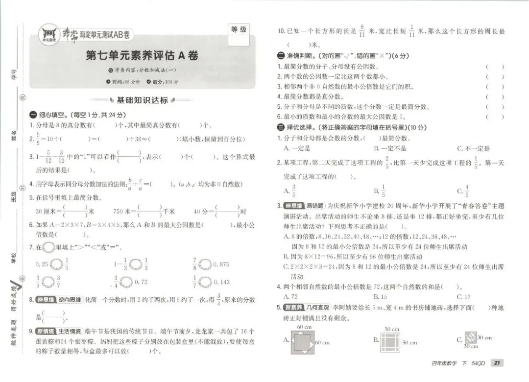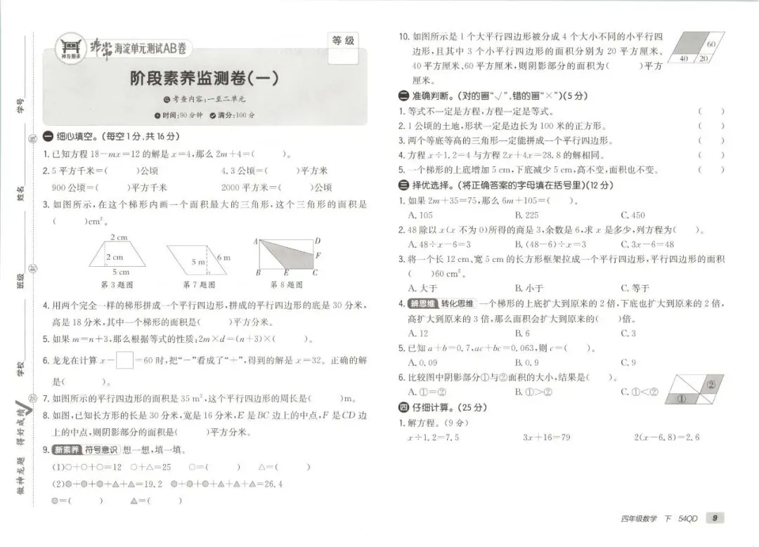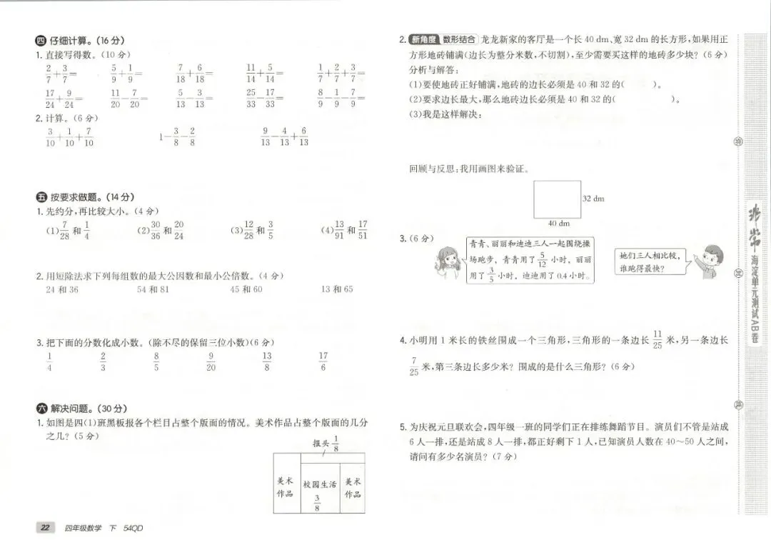26年春新版四年级数学青岛54版《单元知识盘点+素养评估卷+期末专项复习+素养过关卷》,可打印下载(含答案)