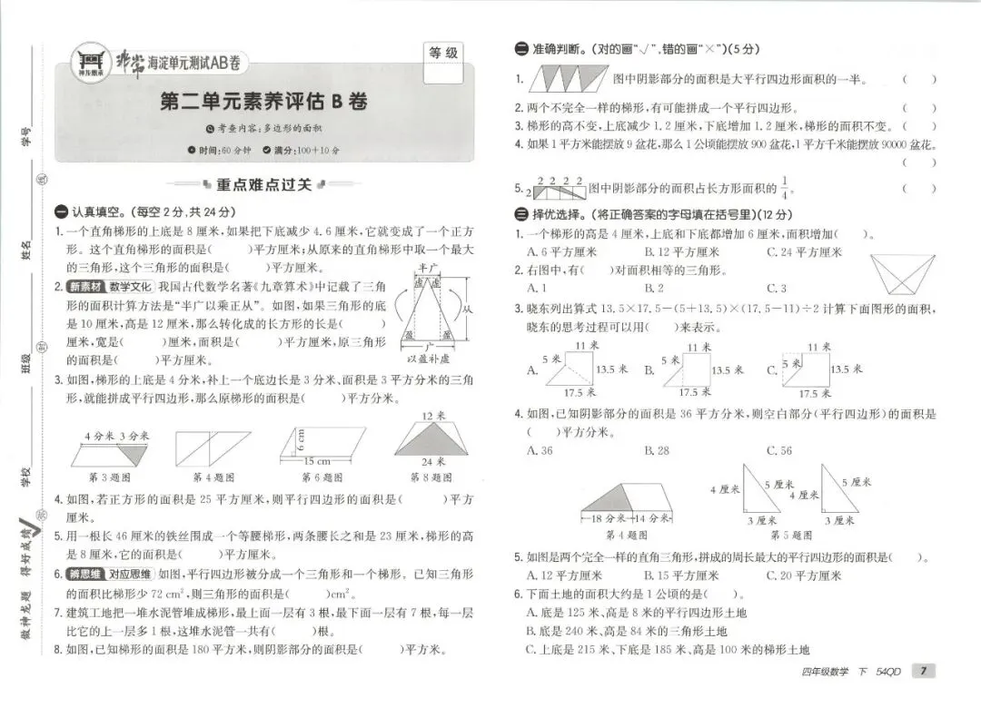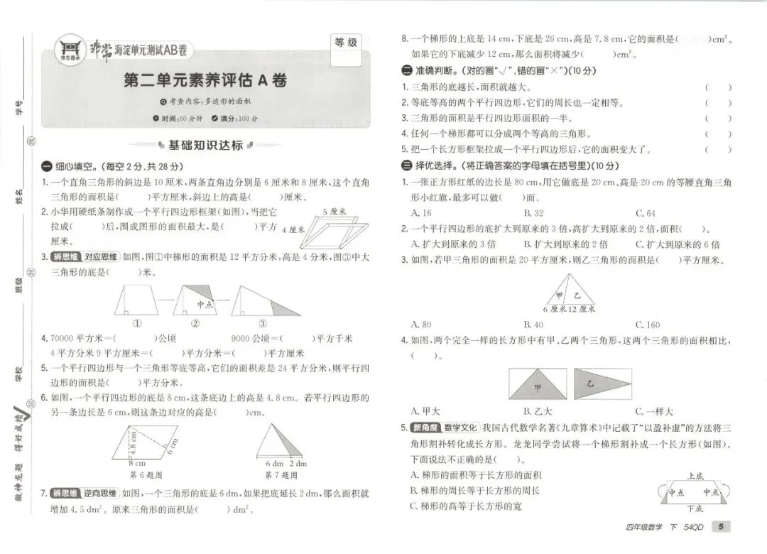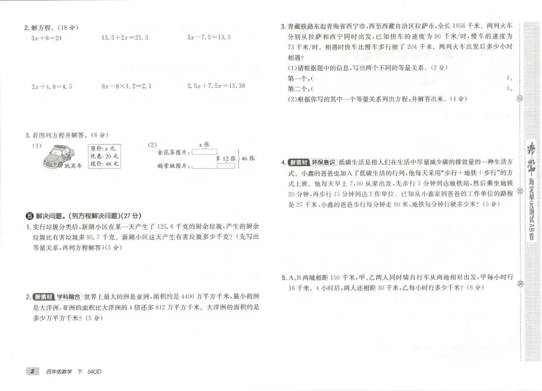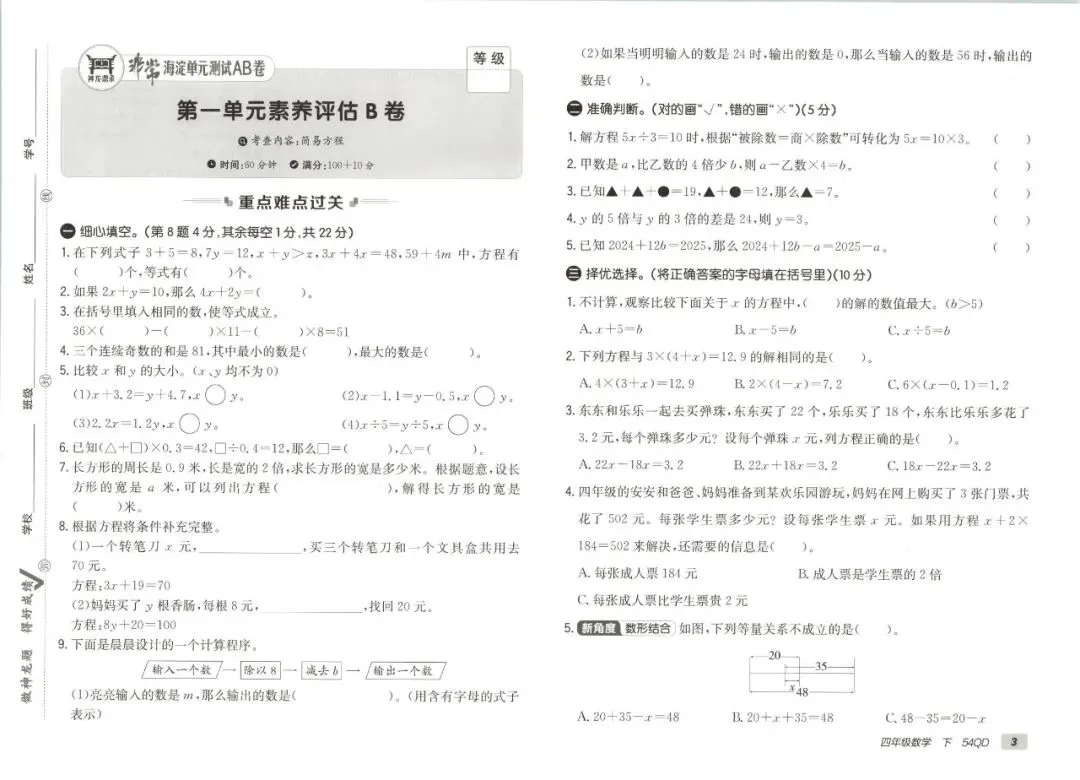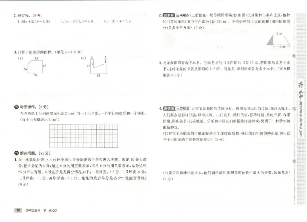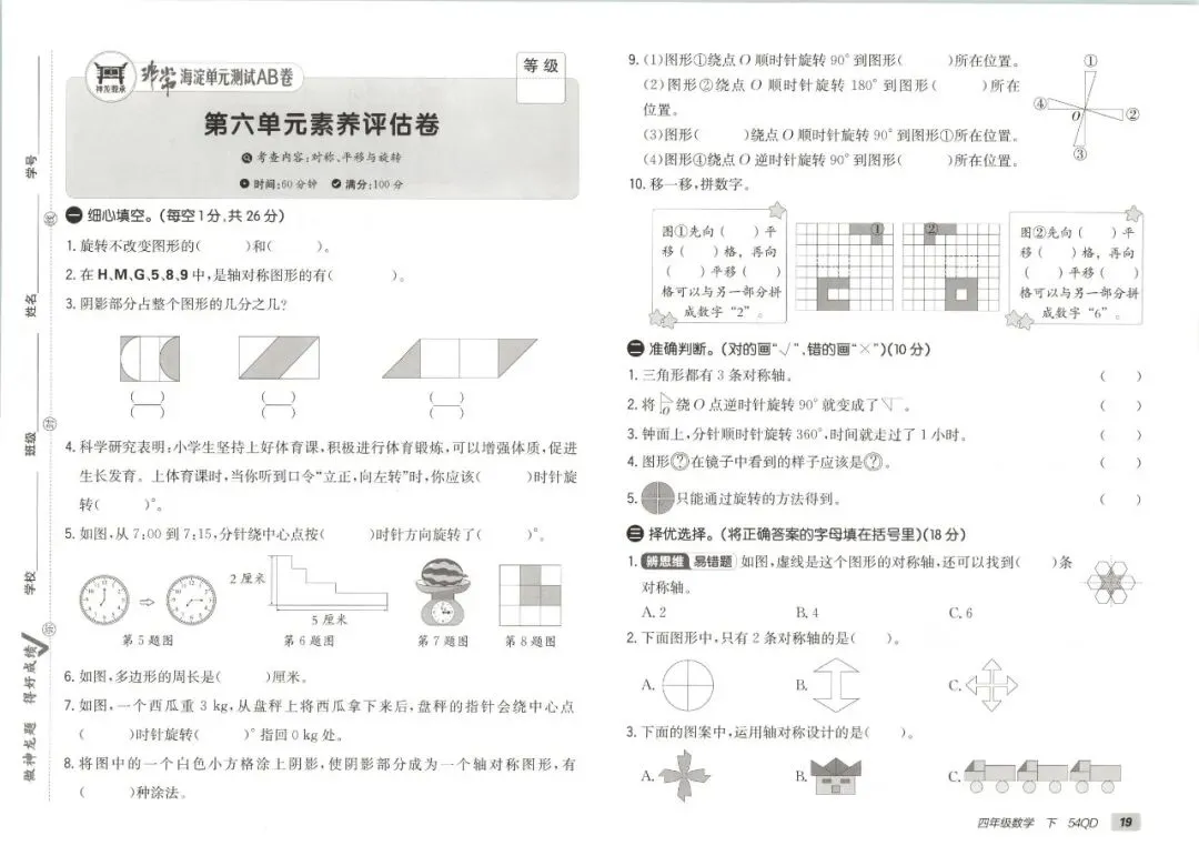 26年春新版四年级数学青岛54版《单元知识盘点+素养评估卷+期末专项复习+素养过关卷》,可打印下载(含答案)