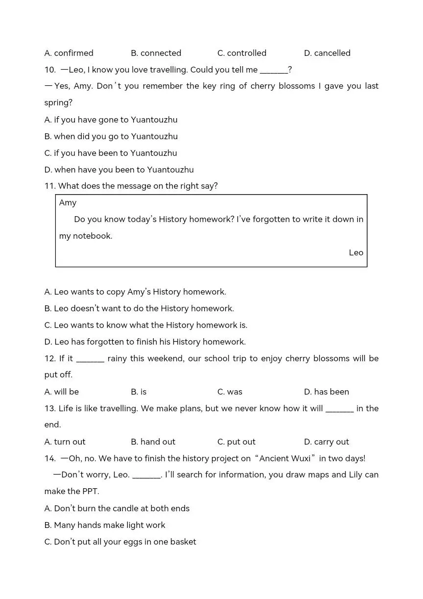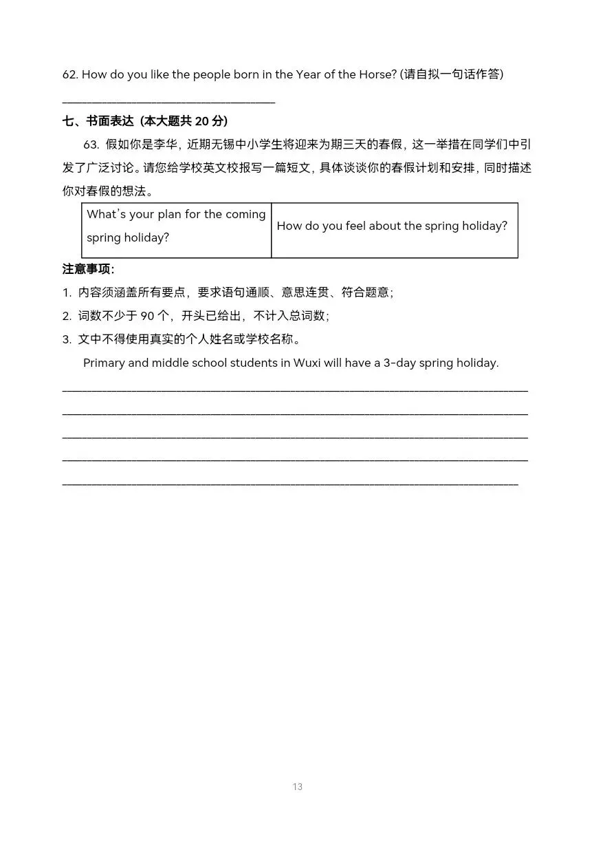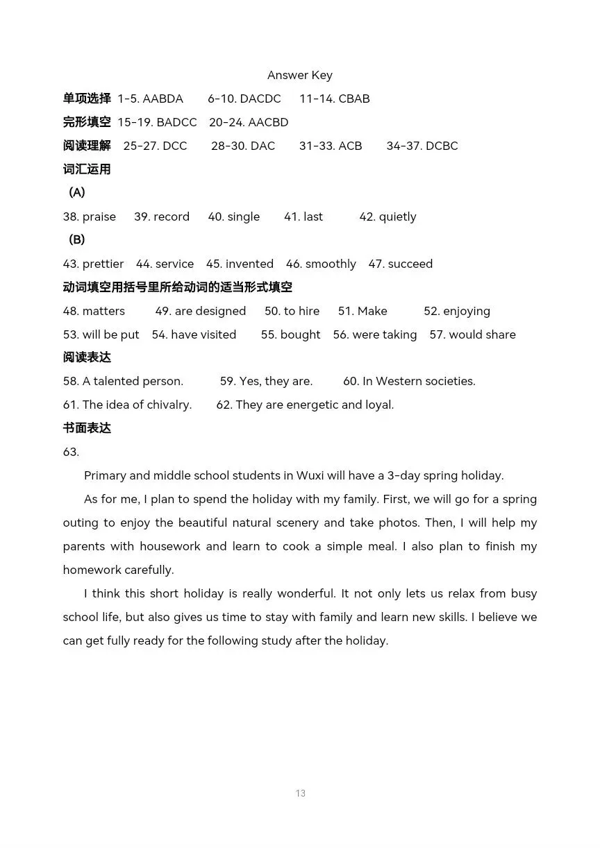 中考英语模拟系列,为您提供各地中考英语模拟试题,有答案,可直接打印。今天我们甄选无锡市锡山区锡北片2026年中考英语一模试题,供同学们高效梳理巩固初中英语重要知识点,助力同学们中考英语取得优异成绩。