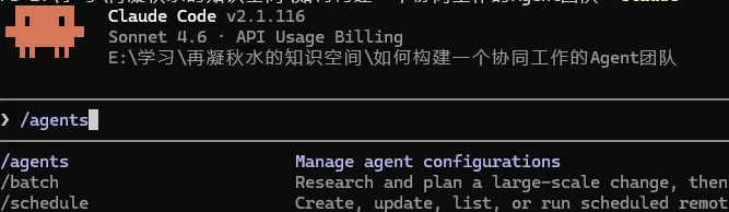 在Claude Code里做这件事很简单,用 /agents 命令就可以创建不同的Agent。