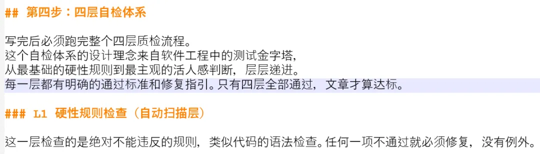 假设你担心Agent帮你润色的文稿携带敏感词,又不想每次都要自己去核一遍,可以在你的文章润色SKILL.md里加入一个评估步骤,提前放入敏感词,以及你不喜欢的措辞,Agent就会自动循环评估,直到优化所有问题。
