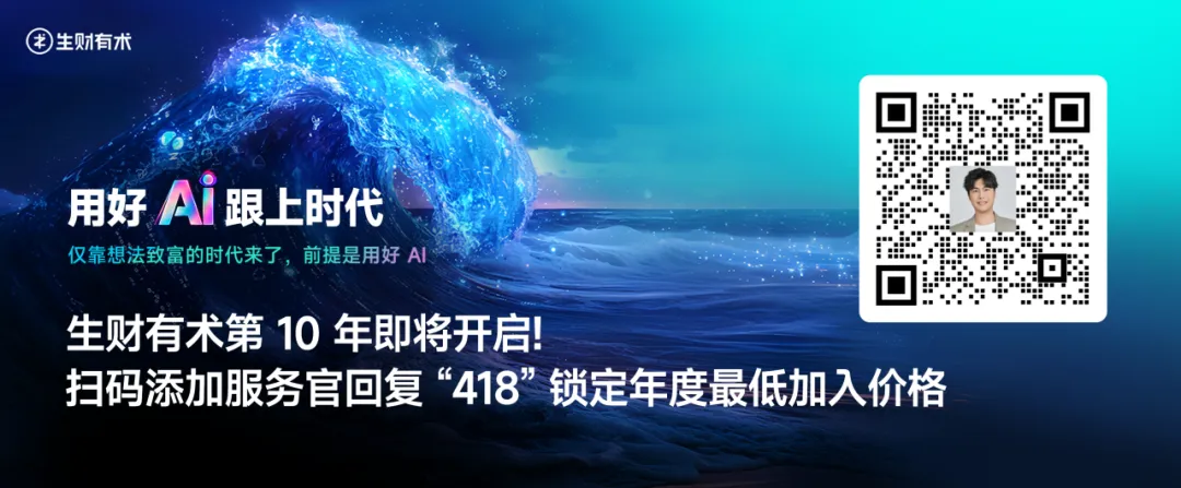 生财有术第10年正式开放,扫描图中二维码,添加鱼丸,回复【418】,参与418活动,锁定年度最低价。