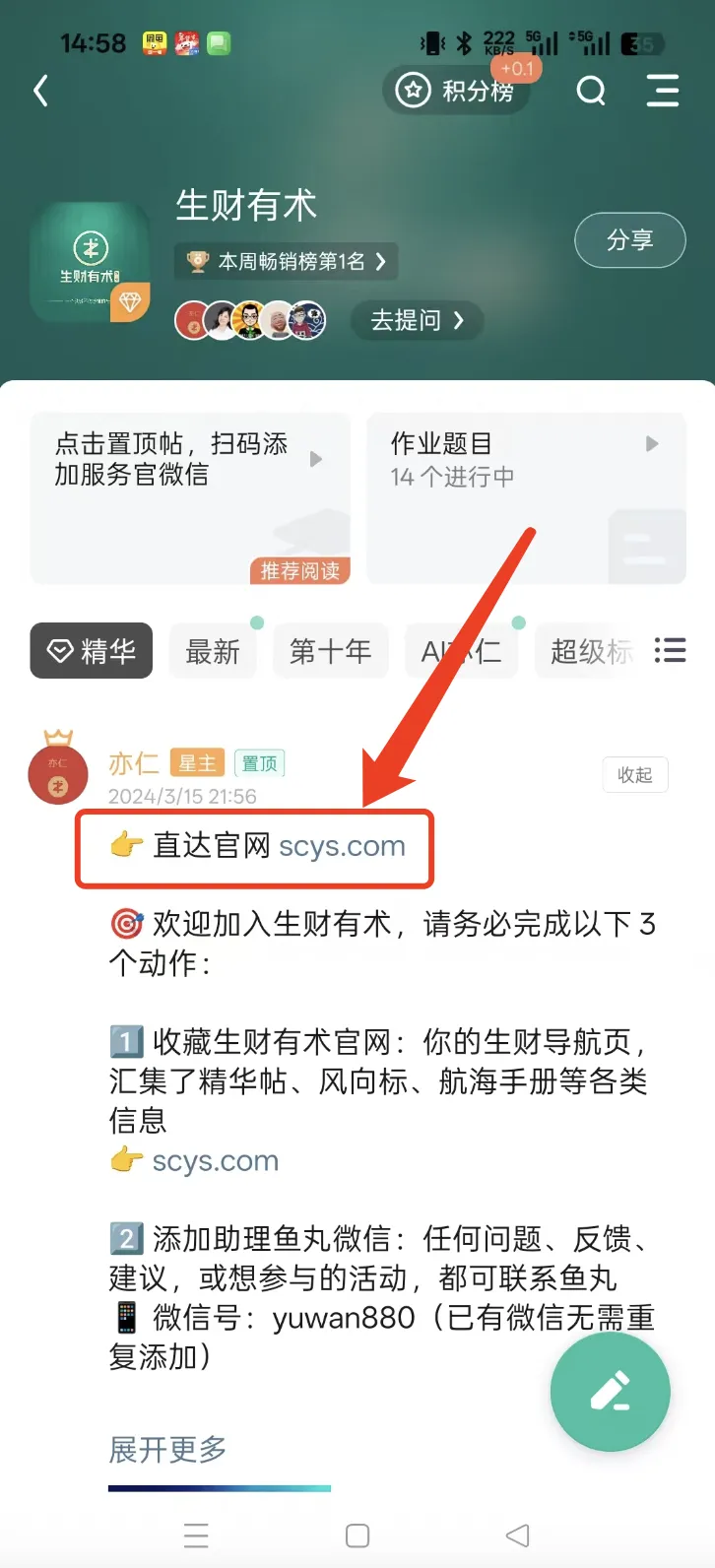 顺便建议你用官网看生财有术,相比知识星球,官网的体验更好,分类更清晰明了。