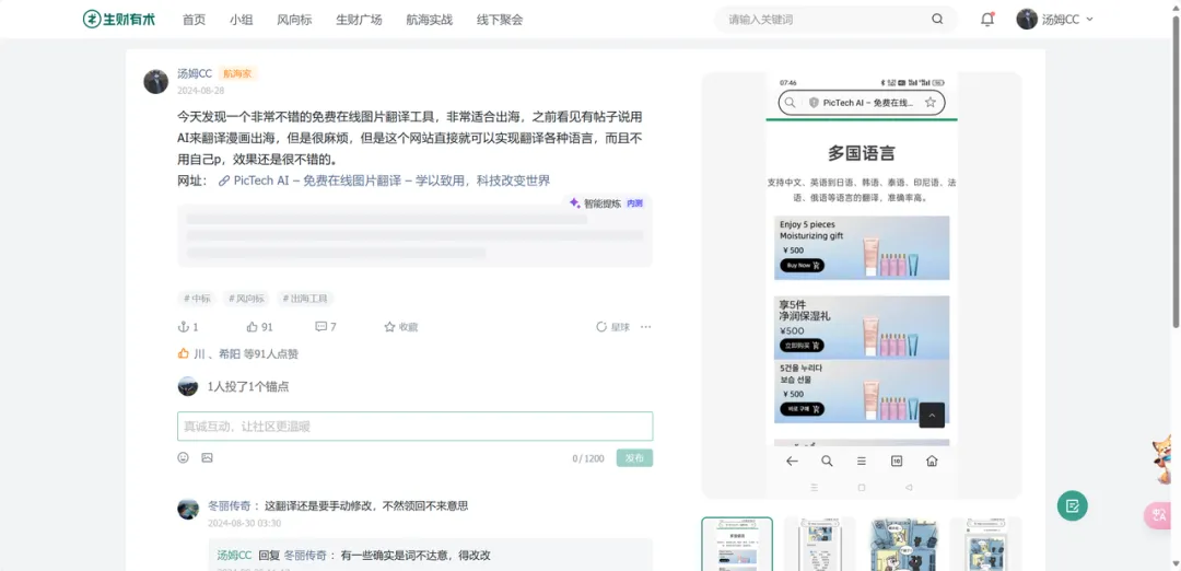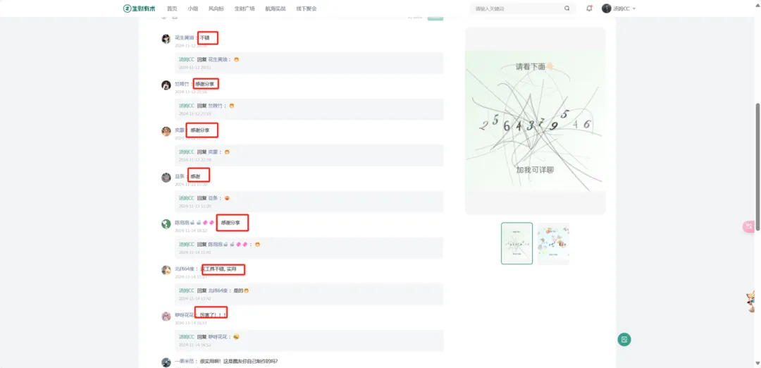 生财里的内容不一样,都是圈友真实在用、真实在跑的项目经验,包括AI工具怎么用、AI结合什么方向有机会、哪些玩法已经被市场验证了。这些内容对我来说有实实在在的参考价值。