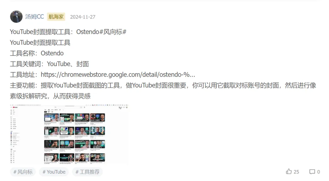 例如在我写完YouTube的封面工具之后,在老彭【标王】的启发下,我创作了我的第一篇长篇帖子【YouTube工具箱】,一经发出,广受好评,随后我又发布了Reddit工具箱。