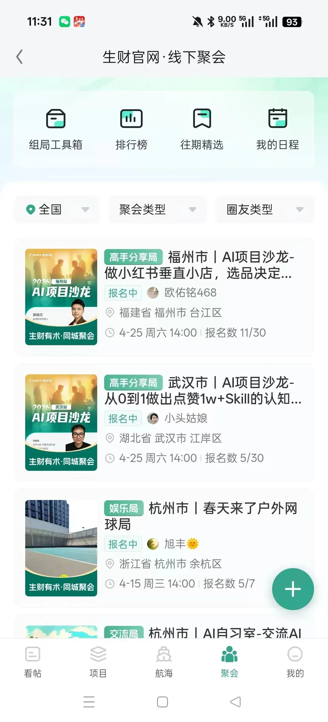 日常组局,来到生财官网你会看到各地的组局活动,有机会一定要参加。你会在本地城市认识一群志同道合的人,或许你们之间存在资源互补。线下的感觉跟线上完全不一样,AI时代一定建议你多出去走走。