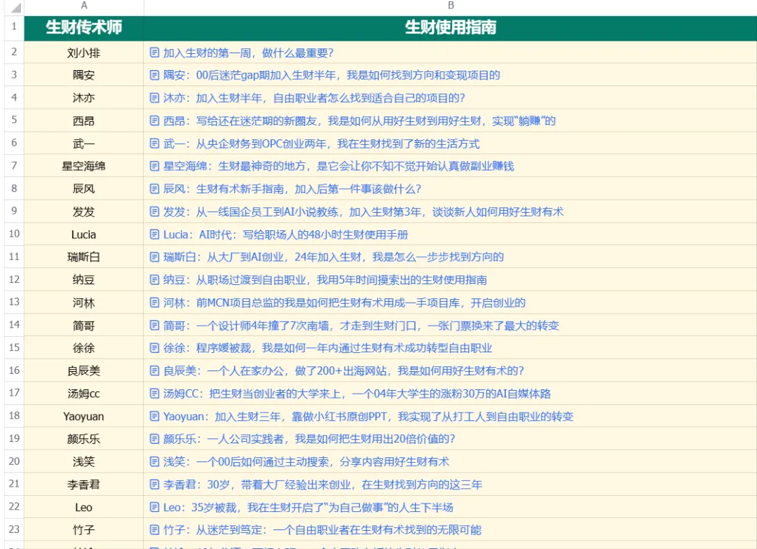 如果你刚进生财,感觉信息太多太杂,不知道从哪里下手,建议你先选一个你感兴趣的航海手册,好好学习。航海手册写得足够细,针对一个项目真的是手把手教学。