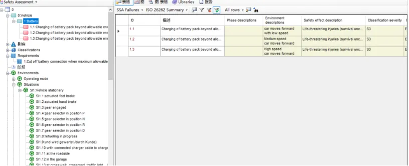 Reliability Workbench系统的Safety Assessment模块支持符合ISO 26262-3要求的HARA分析。