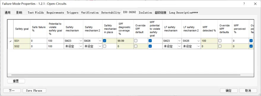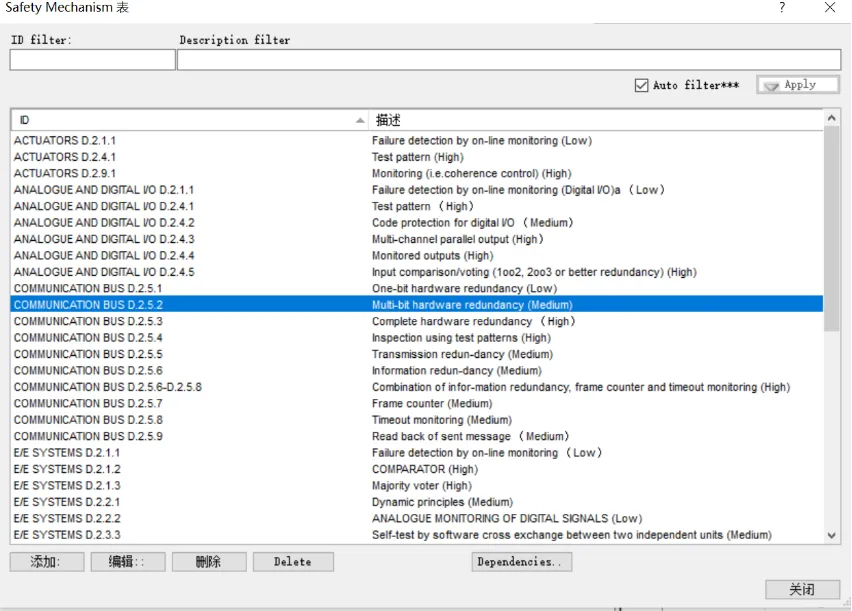 在FMECA模块中,项目工程模板定制了ISO26262 Part5附录的安全机制和Part11半导体产品的安全机制,在开展FMEDA过程中,用户可以直接选择使用。