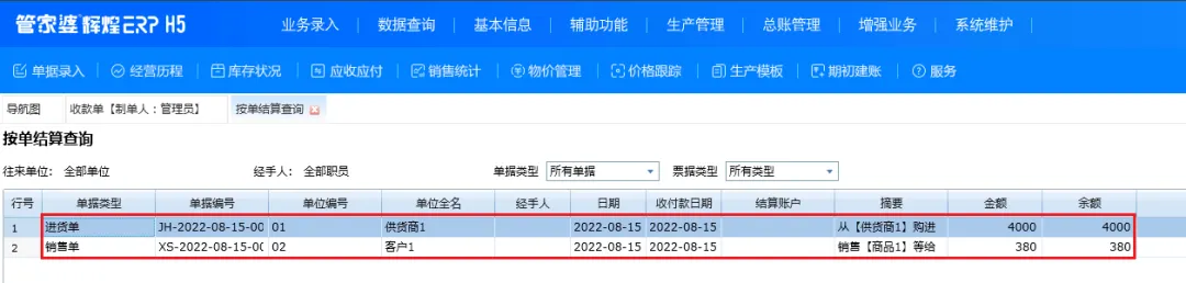补充说明:如果前期使用的是按金额结算,后期不建议去启用按单据结算和按商品结算;因为启用按单结算后前期的单据均是没有按单结算的,所以做收付款单时会全部体现出来并视作为超期款项,得在经营历程中去找到收款单点重新结算来依次结算这些单据,否则做销售单时会一直提示有超期应收款,操作起来会非常麻烦。一般建议年结存后选择按单据结算。