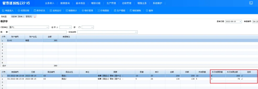 缺点:按单结算做收款时必须每单分配,影响软件的操作速度;