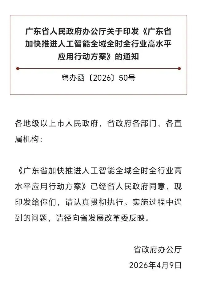 因为大多数人看到的是:“人工智能政策又来了。”但真正的产业玩家看到的是:广东,正在用一份文件,重新定义整个中国AI产业的资源流向。今天,我们不解读政策条文。我们只讲一句话:广东,正在用AI重做一次改革开放。