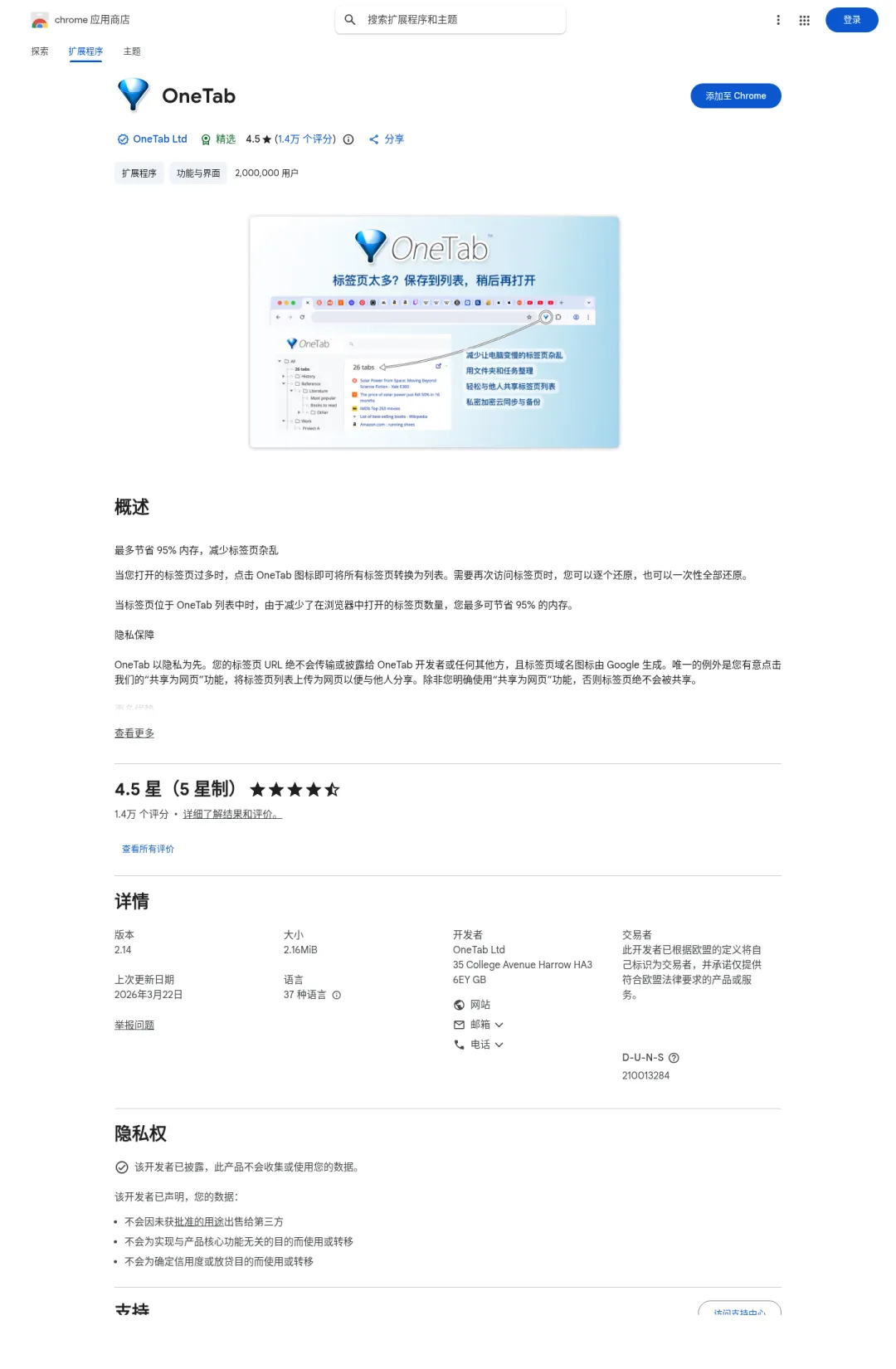2. OneTab:不是让你少开标签,而是让标签别失控