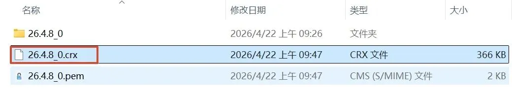将 26.4.8_0.crx 文件拖动到 Microsoft Edge 或者其他浏览器进行安装。果然如我所料我就知道绝对没有我想的那么简单。