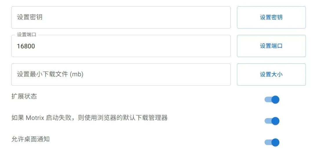然后我们将RPC的配置与Motrix 网页扩展的设置配对好。