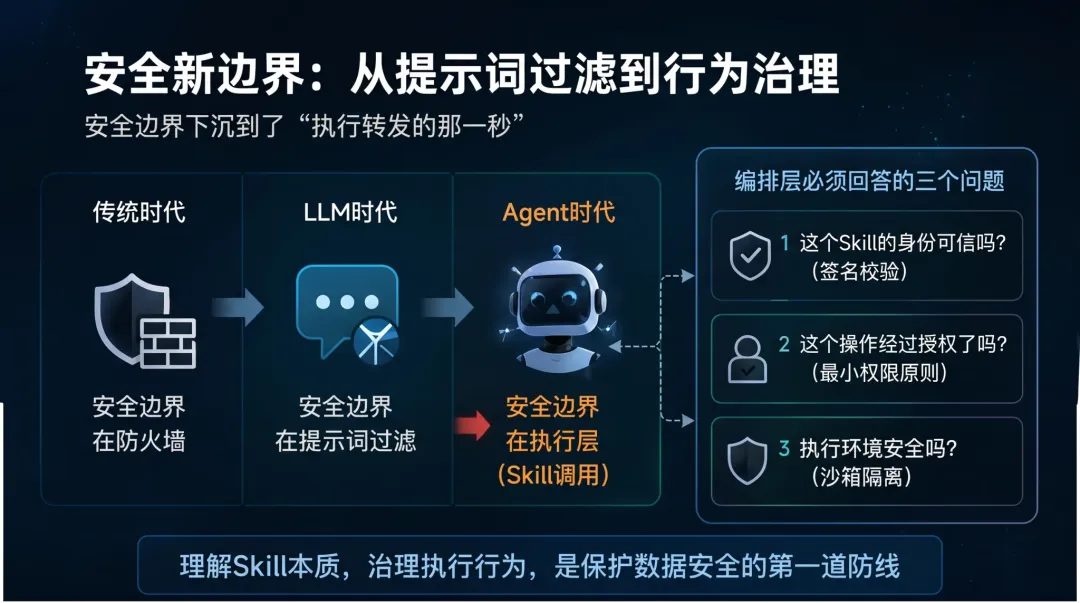 在过去,安全边界在防火墙;在 LLM 时代,边界在提示词过滤;而在 Agent 时代,安全边界下沉到了执行转发的那一秒。