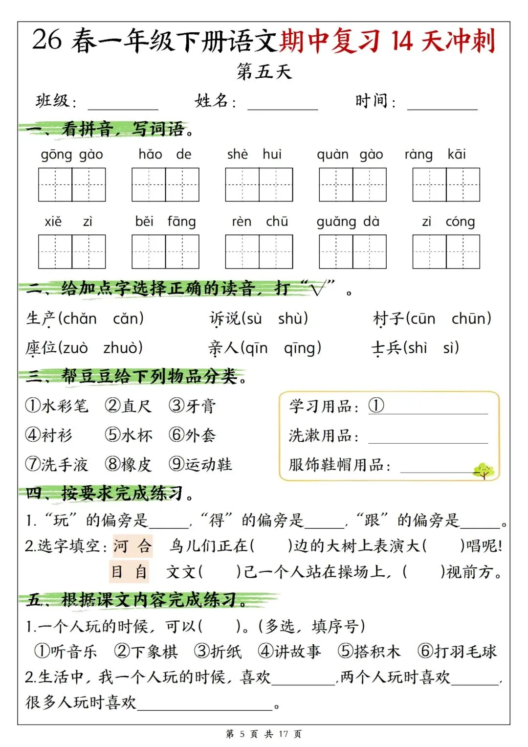 【附下载链接】2026春1-6年级下册语文、数学《期中复习冲刺》,PDF电子版(可可打印),愿此份资料能够帮助到孩子.