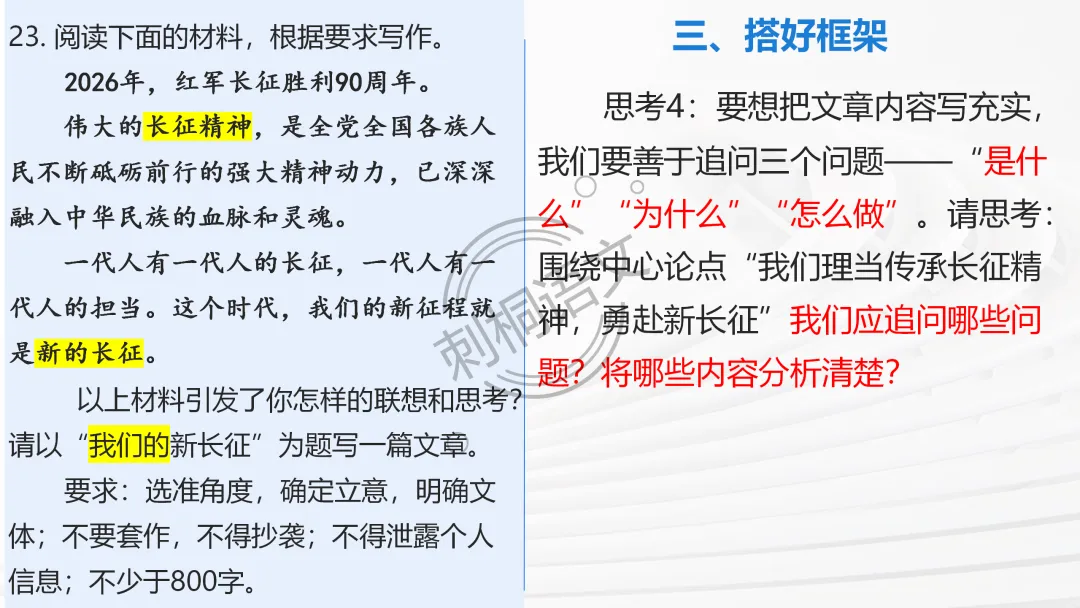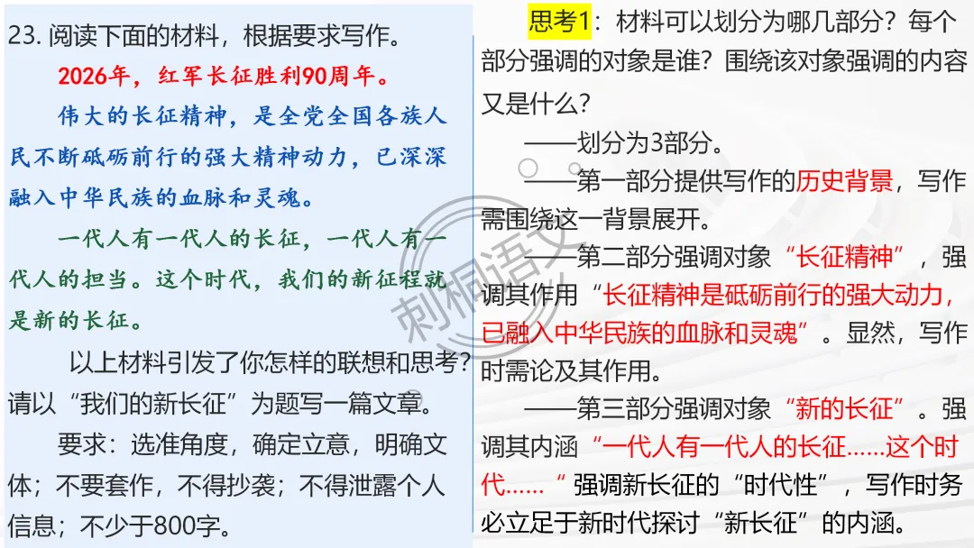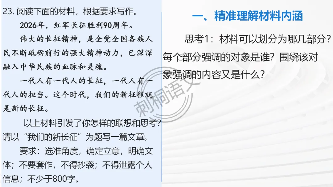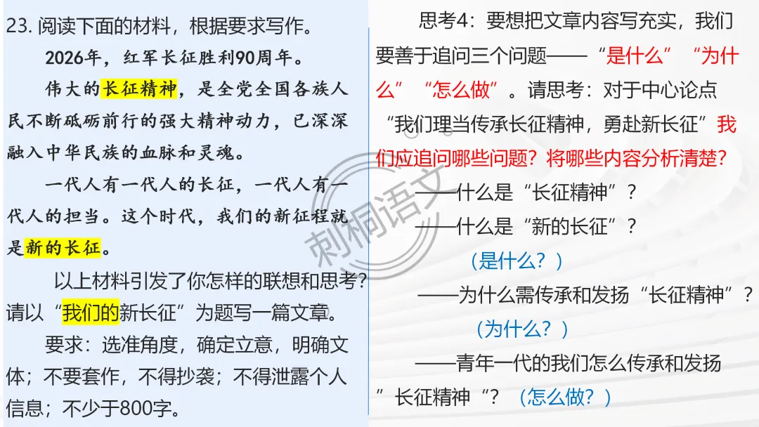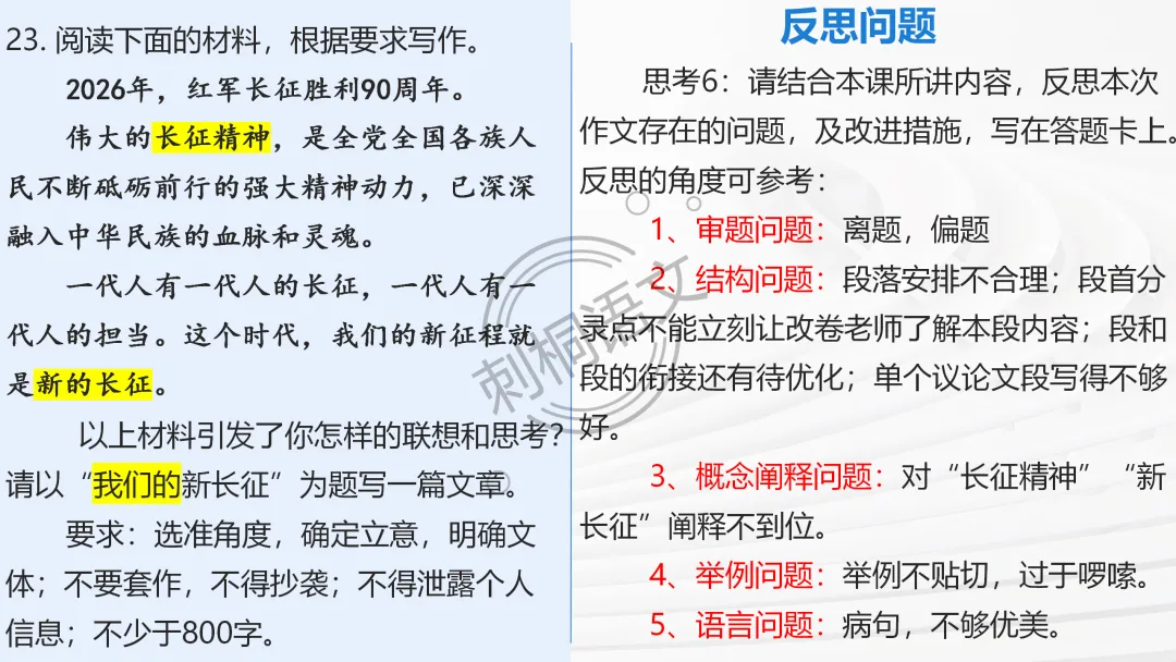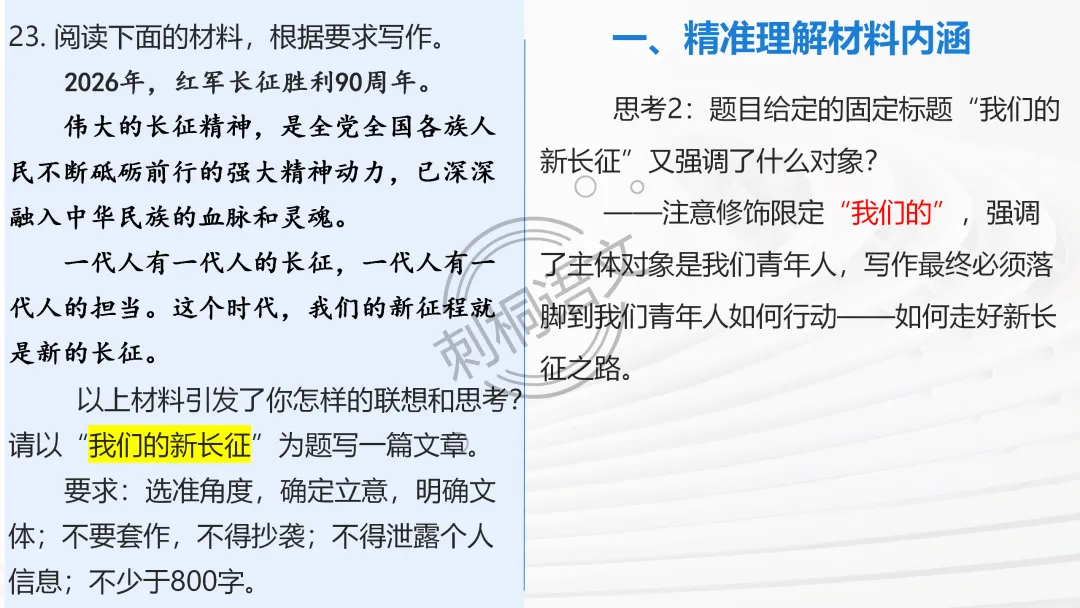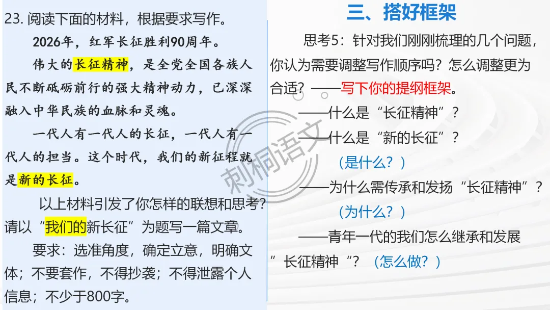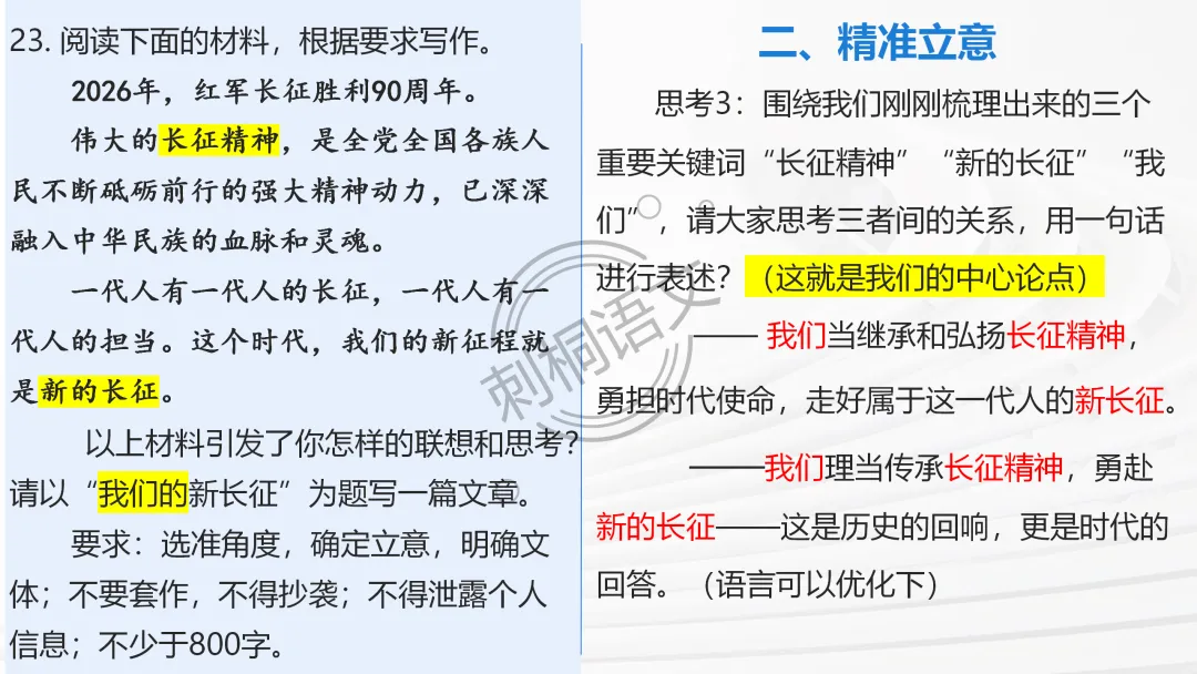 ✅ 问题链引导主动思考:审题立意阶段设计递进式问题,从 “读材料” 到 “定立意”,推着学生从被动听讲到主动思考;