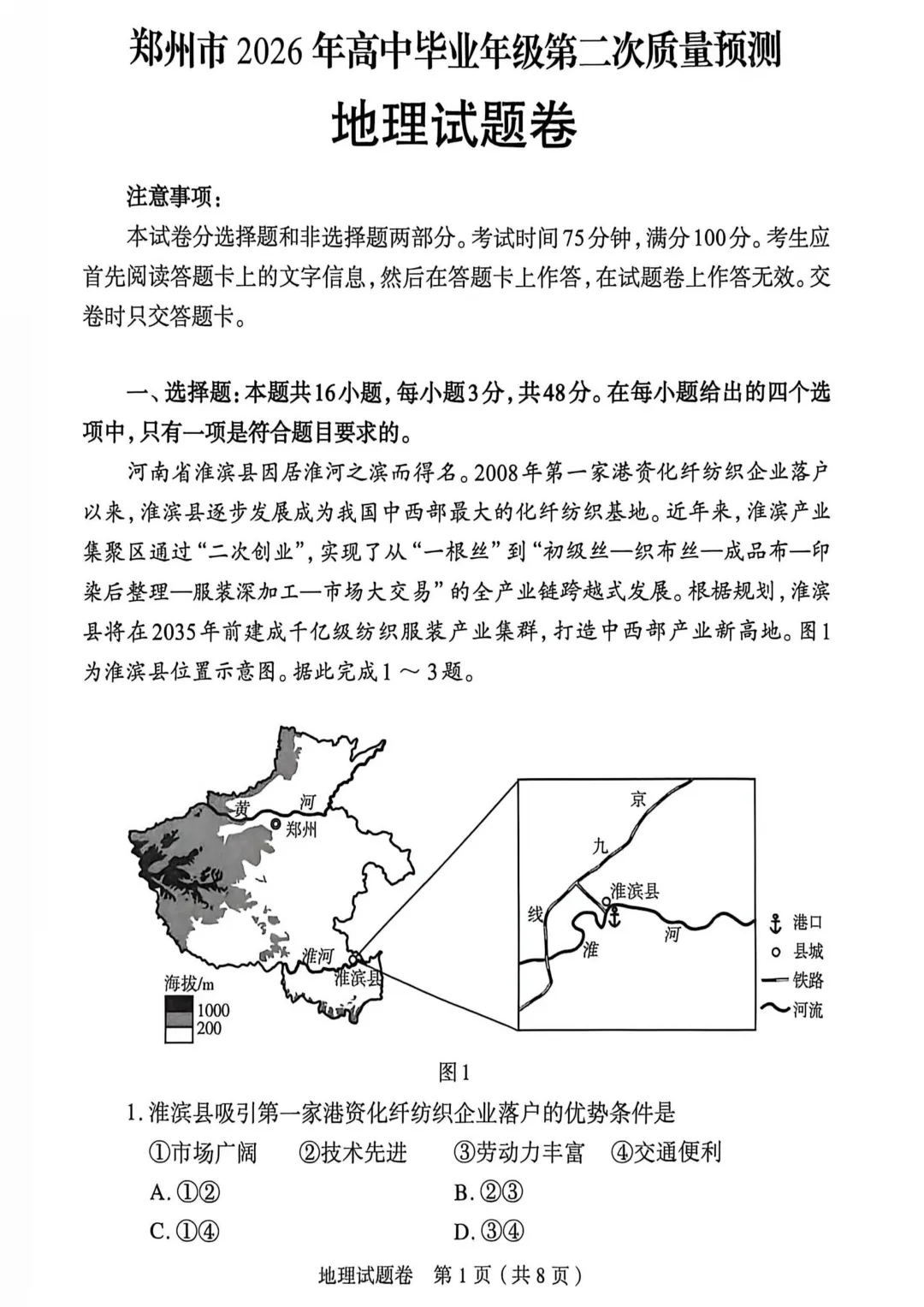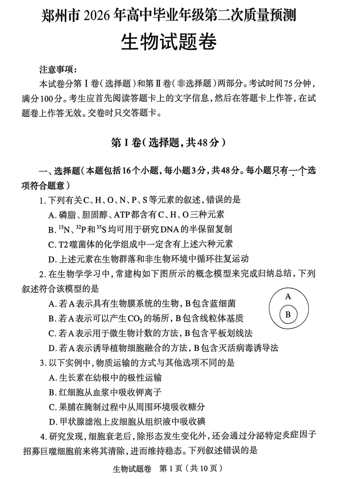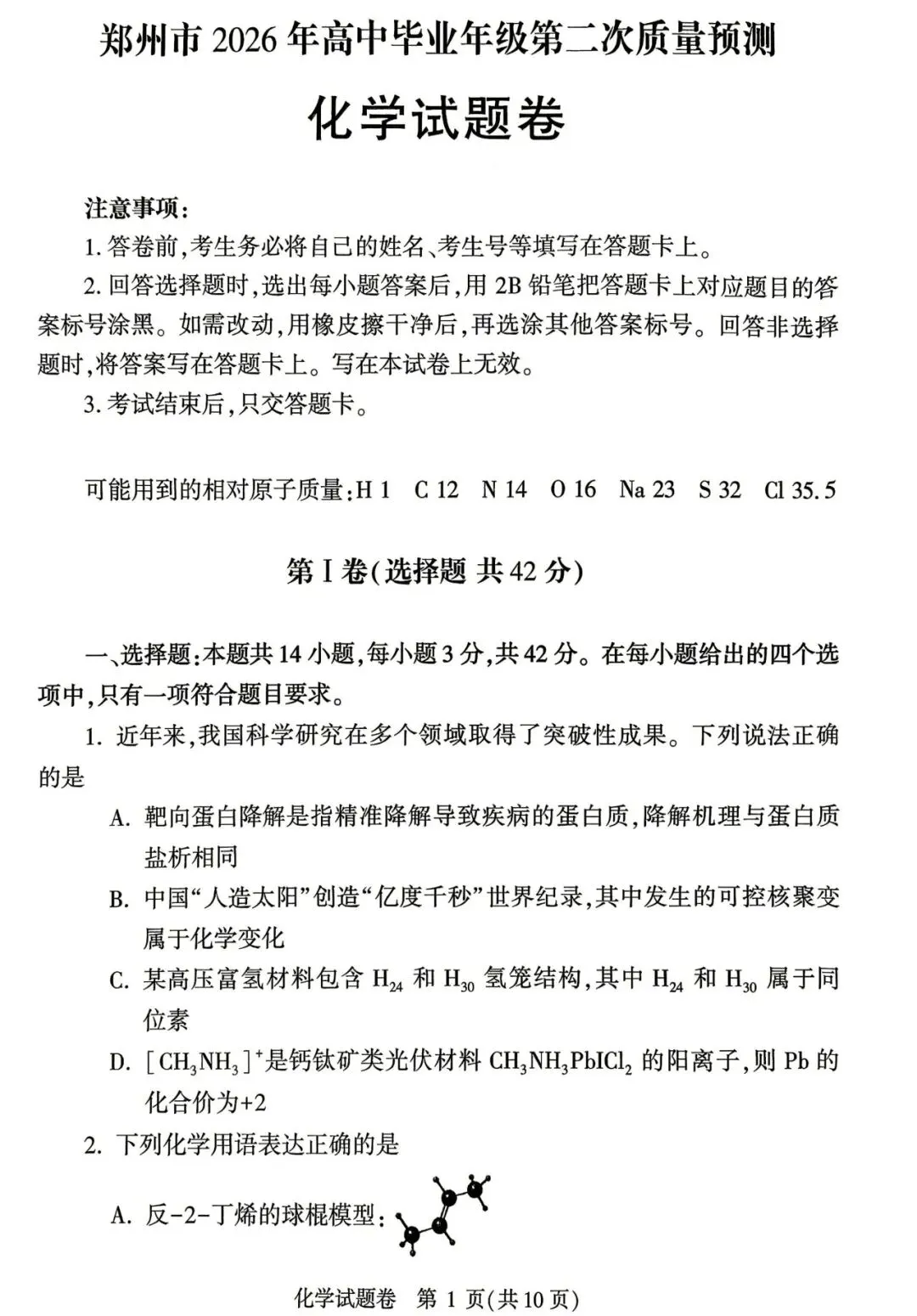 【9科全可下载】郑州市2026年高三二测(9科全)试题、听力及参考答案(文末)