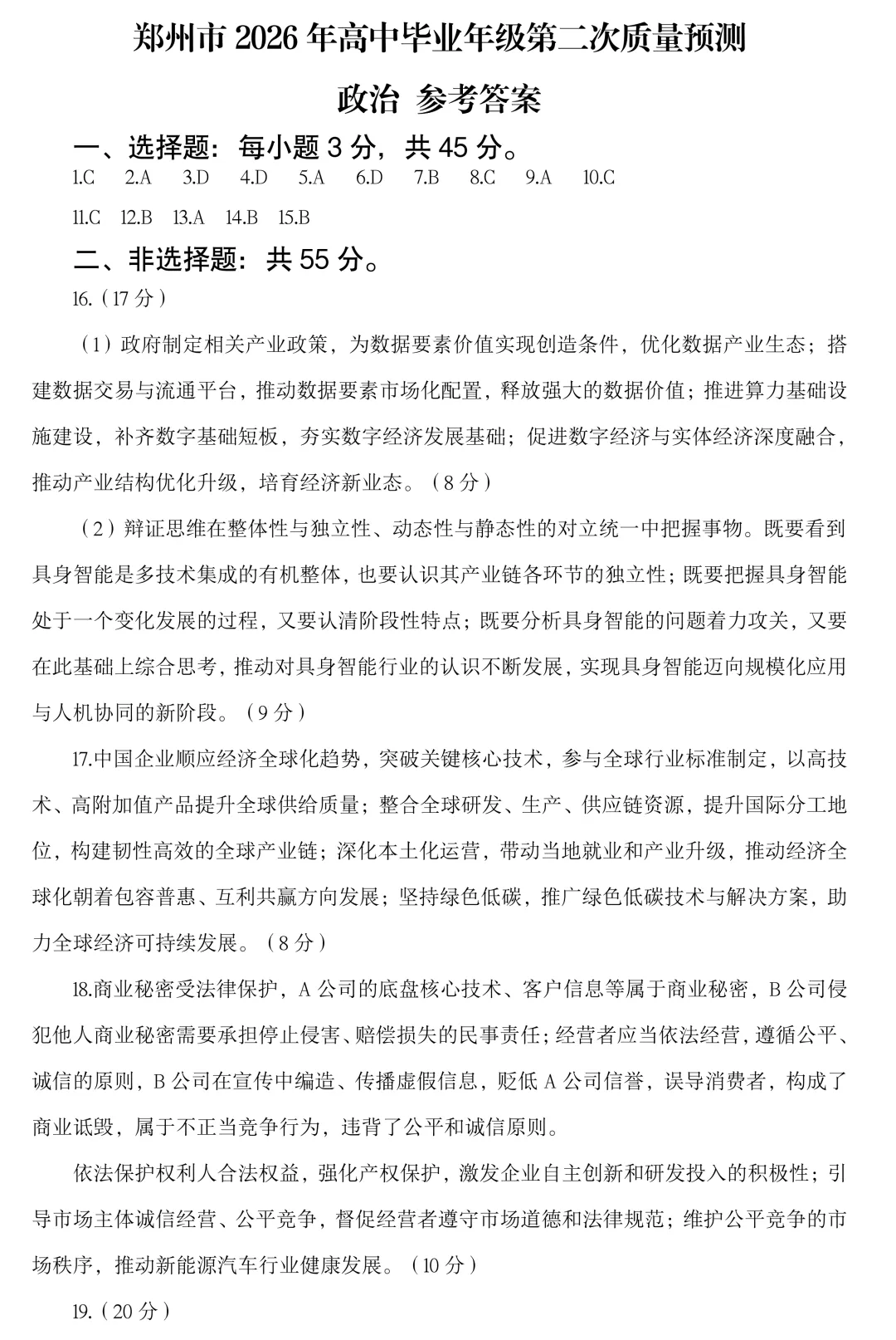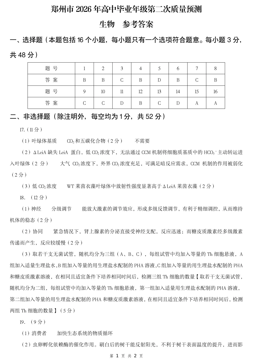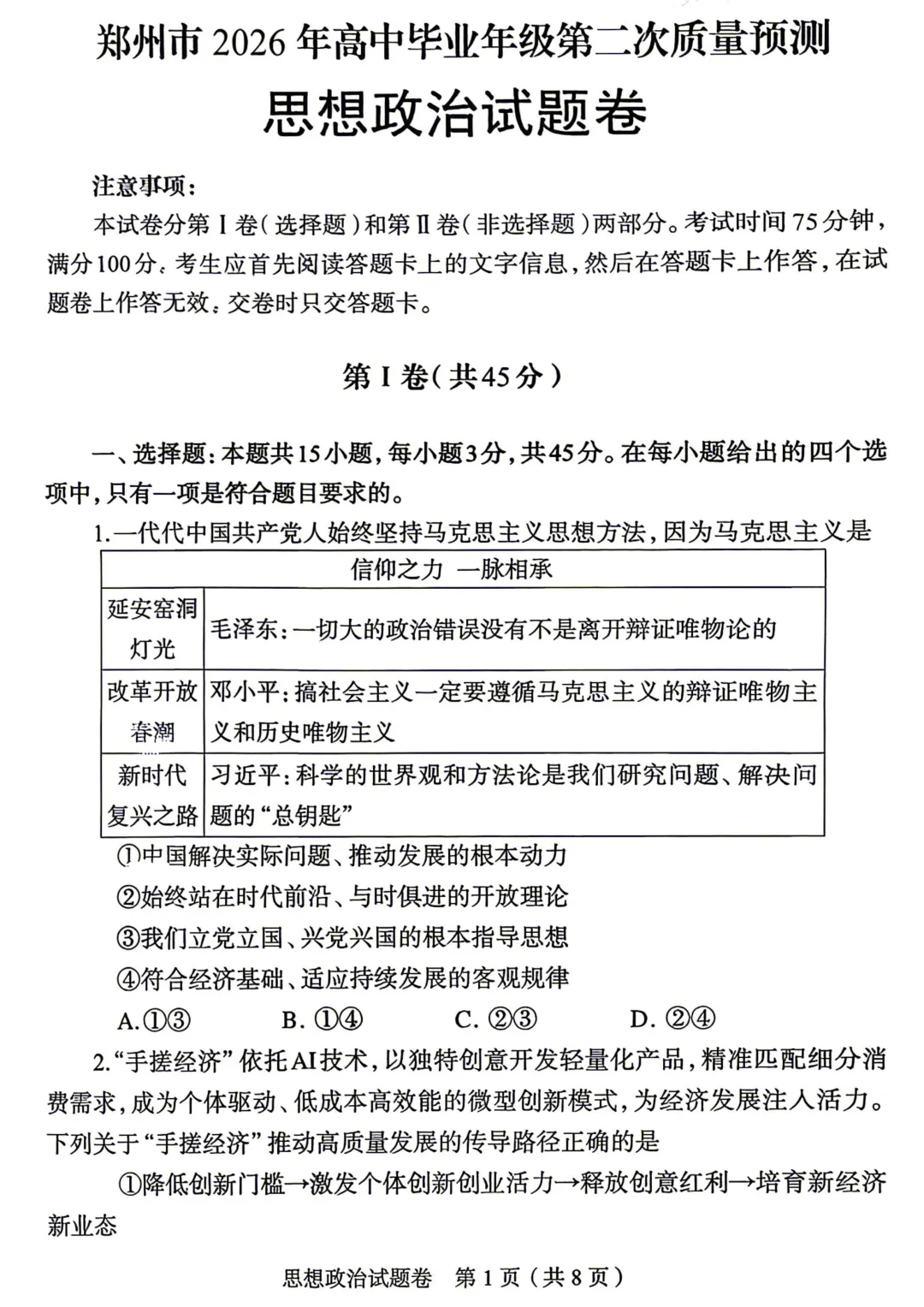 【9科全可下载】郑州市2026年高三二测(9科全)试题、听力及参考答案(文末)