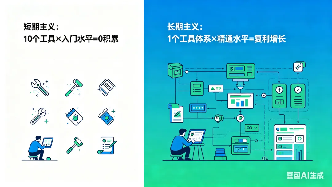短期主义:学10个工具,每个都是入门水平