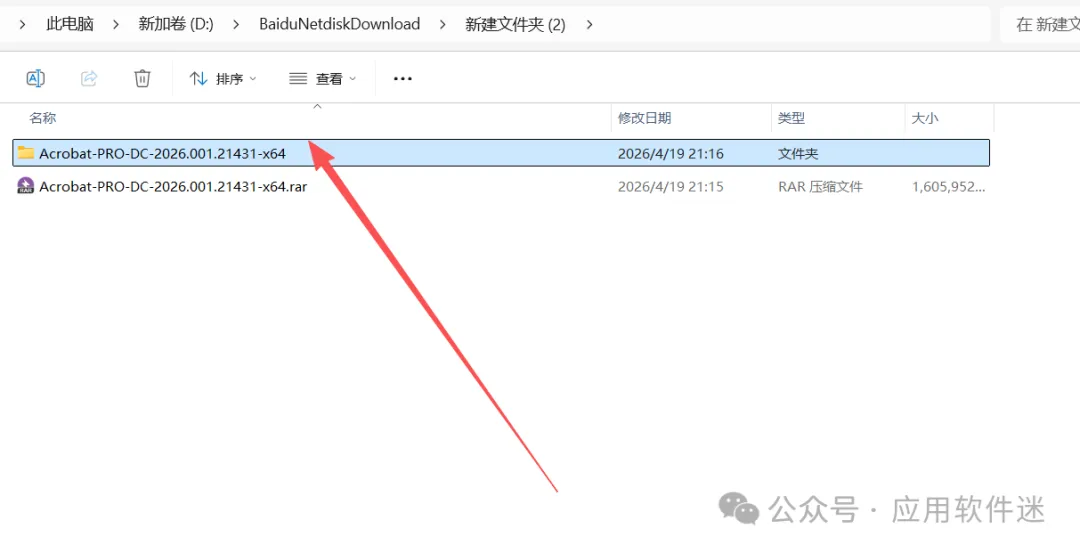 2.双击进入解压后的【Acrobat-PRO-DC-2026.001.21431-x64】文件夹。