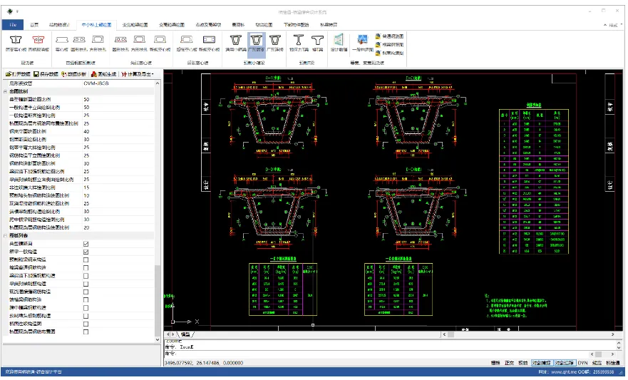 能完成任意角度和跨径的简支结构、桥面连续结构、先简支后连续结构的上部设计、出图、工程量统计等。 -