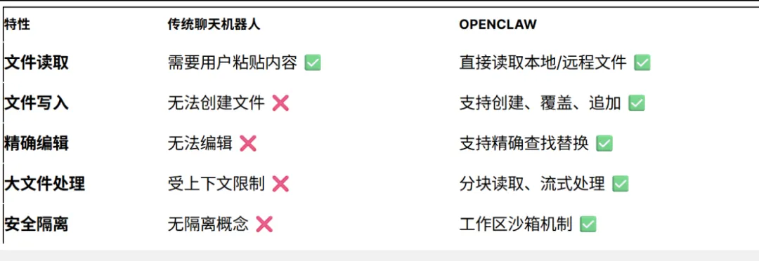 ChatGPT、豆包这类工具,你问它问题,它给你回答或建议,但不会帮你动手做事。而OpenClaw不一样,你给它一个指令,它可以自己去打开文件、写代码、发邮件、整理数据、生成报表,然后一步步执行完成。